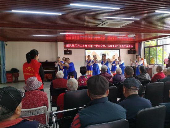 九九重阳节,浓浓敬老情。为弘扬中华民族敬老、爱老、助老的传统美德,丰富老年人节日文化生活,10月22日上午,新风社区关工小组联合夕阳红艺术团,一同前往和平养老院开展文艺慰问演出活动。67人观看表演。