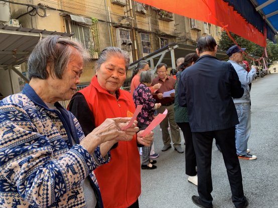 活动筹备阶段,社区党员干部便带头践行清廉理念,联合小区居民代表共同制定活动方案,食材采购清单、菜品数量全程公开,无任何铺张浪费环节,用实际行动诠释清廉社区建设的“日常温度”。活动现场亮点纷呈,除了美食区的热闹景象,一旁的猜灯谜互动区更是人气爆棚,成为带动气氛的“引擎”。粉红色的灯谜条子悬挂整齐,内容丰富有趣,居民们纷纷驻足思考、小声讨论,参与热情十分高涨。大家选中心仪的灯谜后,若猜出答案,便小心翼翼撕下对应的条子,快步前往兑奖处核对。只要答案正确,就能领到重阳节专属小礼品——抽纸和小毛巾一份,实用的礼物让大家的参与劲头更足,欢呼声与笑语声交织成一片。另一边,热心居民们带着自家烹制的拿手菜如约而至:软糯入味的梅菜扣肉、鲜爽可口的凉拌木耳、香甜软糯的南瓜饼……一道道家常菜摆满长桌,满是烟火气与亲切感。党员志愿者们主动上前,为行动不便的高龄老人搬座椅、递碗筷,耐心询问老人的饮食偏好;居民们围坐在一起,一边分享美食,一边交流生活点滴,原本陌生的邻里渐渐熟络,“有事互相帮、邻里一家亲”的氛围愈发浓厚。“邻里和睦是社区和谐的基石,清廉家风是基层治理的清风。”社区党委书记肖宁宁来到居民中间,结合社区近期公示的“小微权力”运行情况、居务公开事项,用通俗的语言向大家讲解清廉社区建设的具体举措,还分享了社区内“孝亲敬老、清廉持家”的典型家庭故事,引导居民们以优良家风涵养淳朴民风,以邻里互助凝聚治理合力。同时,她为在场的每一位高龄老人送上重阳节祝福,叮嘱老人们注意秋冬保暖,鼓励大家遇到困难及时向社区反映,社区会全力做好服务保障。