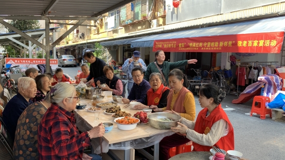 10月28日中午,文笔路3号小区党群连心角飘满饭菜香、漾着欢笑声,红阳社区“情满红阳 守望相助 新邻里”敬老百家宴活动温情启幕。社区党员干部主动下沉一线,与小区居民围坐共餐、暖心交流,既以美食传递敬老情、以互动拉近邻里心,更以清廉家风为引、以文明实践为基,让“清风”与“温情”共融,为基层治理注入强劲动能。