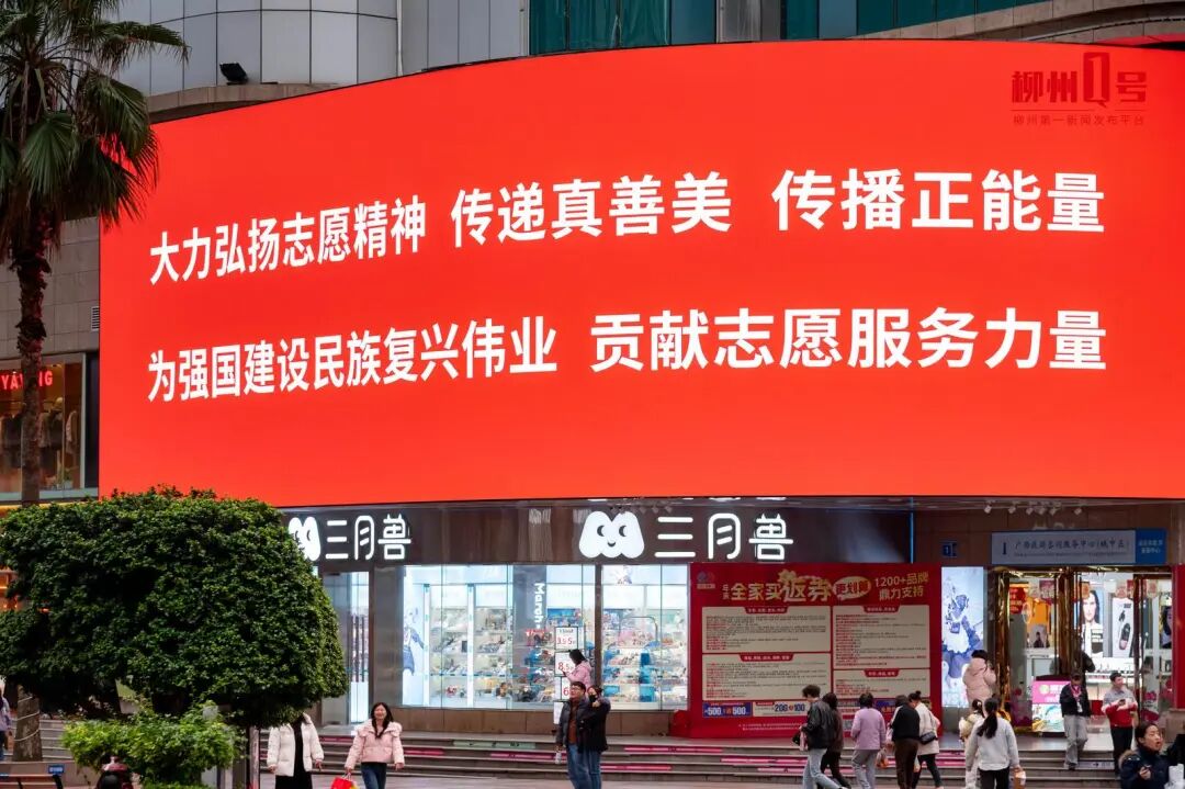 龙城路的公交站LED屏播放着国际志愿者日相关内容
