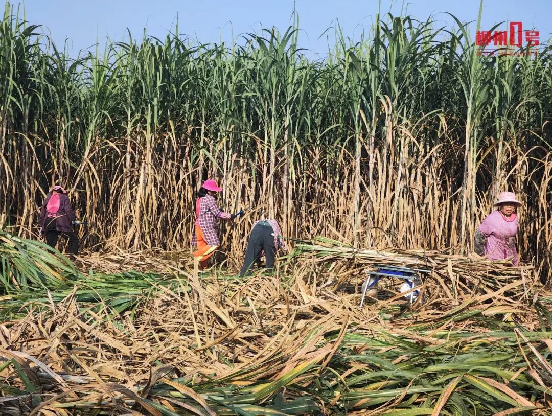 村民们在甘蔗地里劳作。
