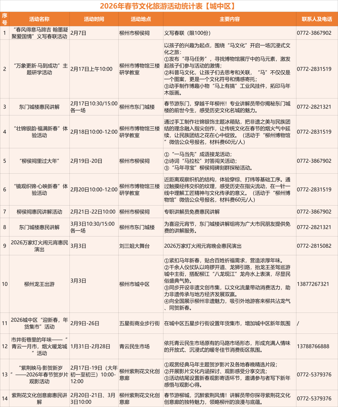 宝藏柳州为你火速集结了一场遍布市区和县份,130+项的新春狂欢!这可不是普通的攻略,而是一份“马上游柳州”的超级行动指令。从今天起,做一匹驰骋在龙城山水与年味里的“骏马”!