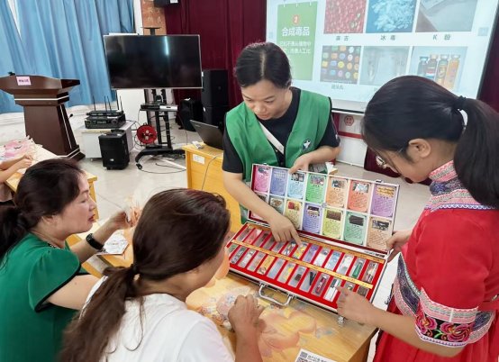 制作间隙,禁毒社工拿出展示毒品模型。这些模型不仅包含了常见毒品还有近年来出现的新型毒品,每个模型上面还印有禁毒举报电话,鼓励居民积极参与禁毒工作。同时,工作人员还耐心解答居民们提出的各种问题,进一步加深居民对禁毒知识的理解。