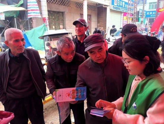12月23日,洛满镇借助集贸市场开业的有利时机,在市场开展禁毒宣传活动。