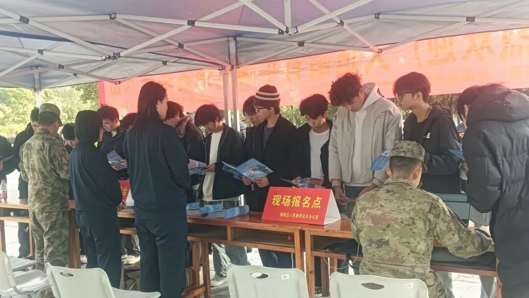 12月27日,广西柳州市柳南区人武部走进柳州铁道职业技术学院开展征兵宣传进校园活动,面对面为青年学子答疑解惑、宣讲政策,积极动员广大学子携笔从戎、参军报国,现场报名人数达百余人。