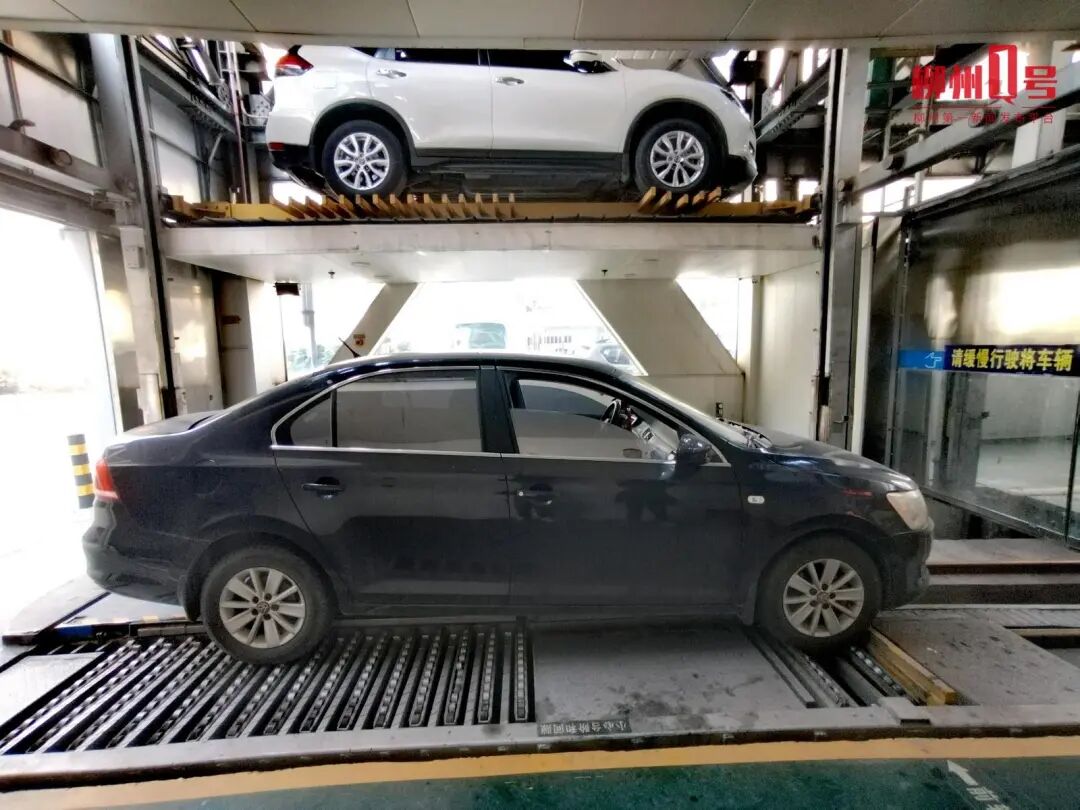 潭中西路公共停车场内的机械立体停车库。