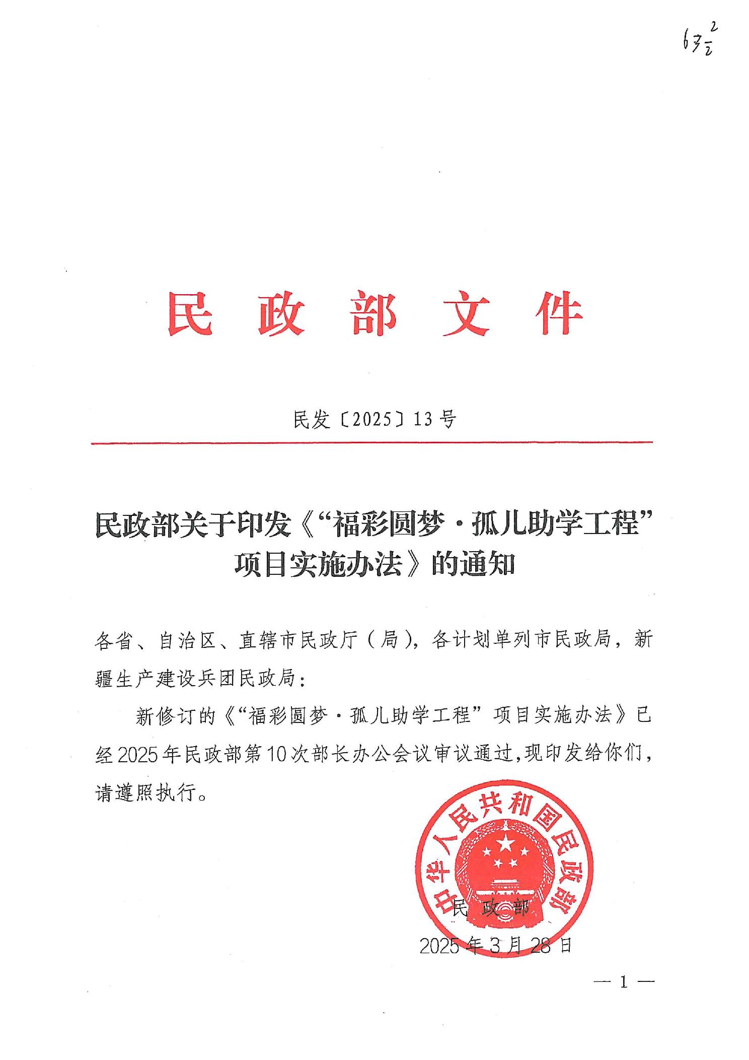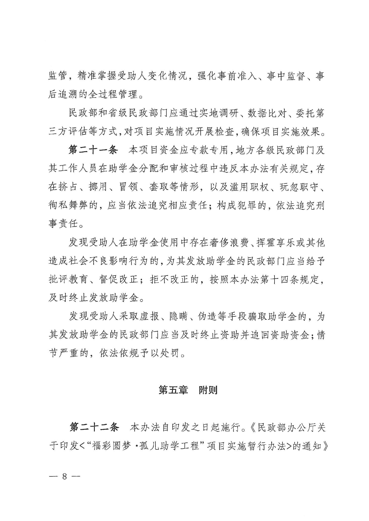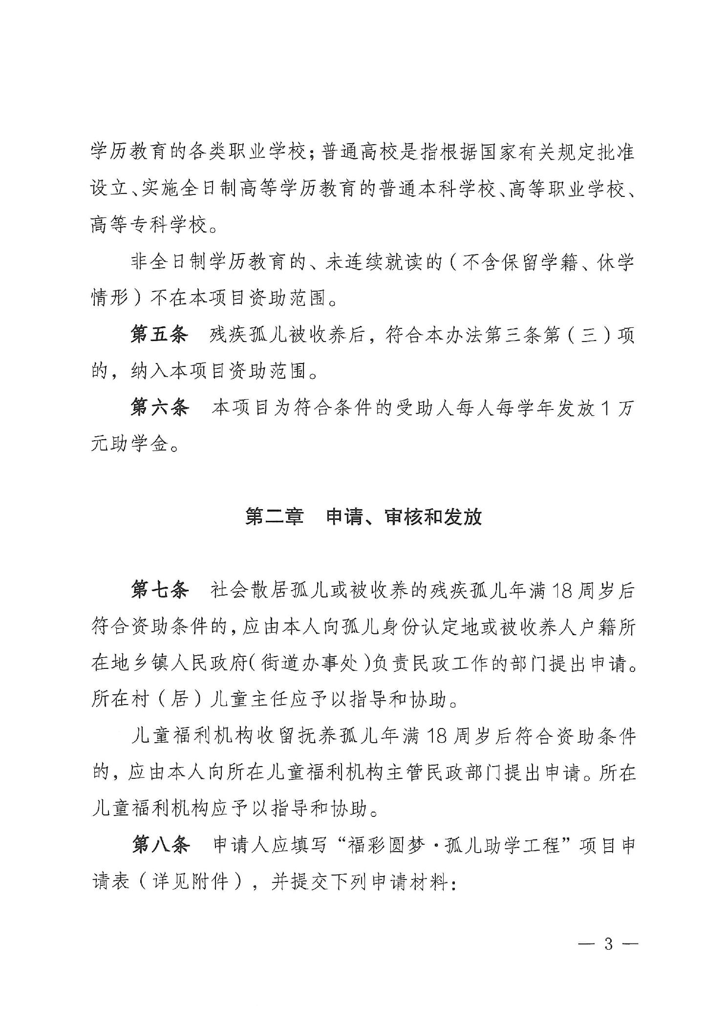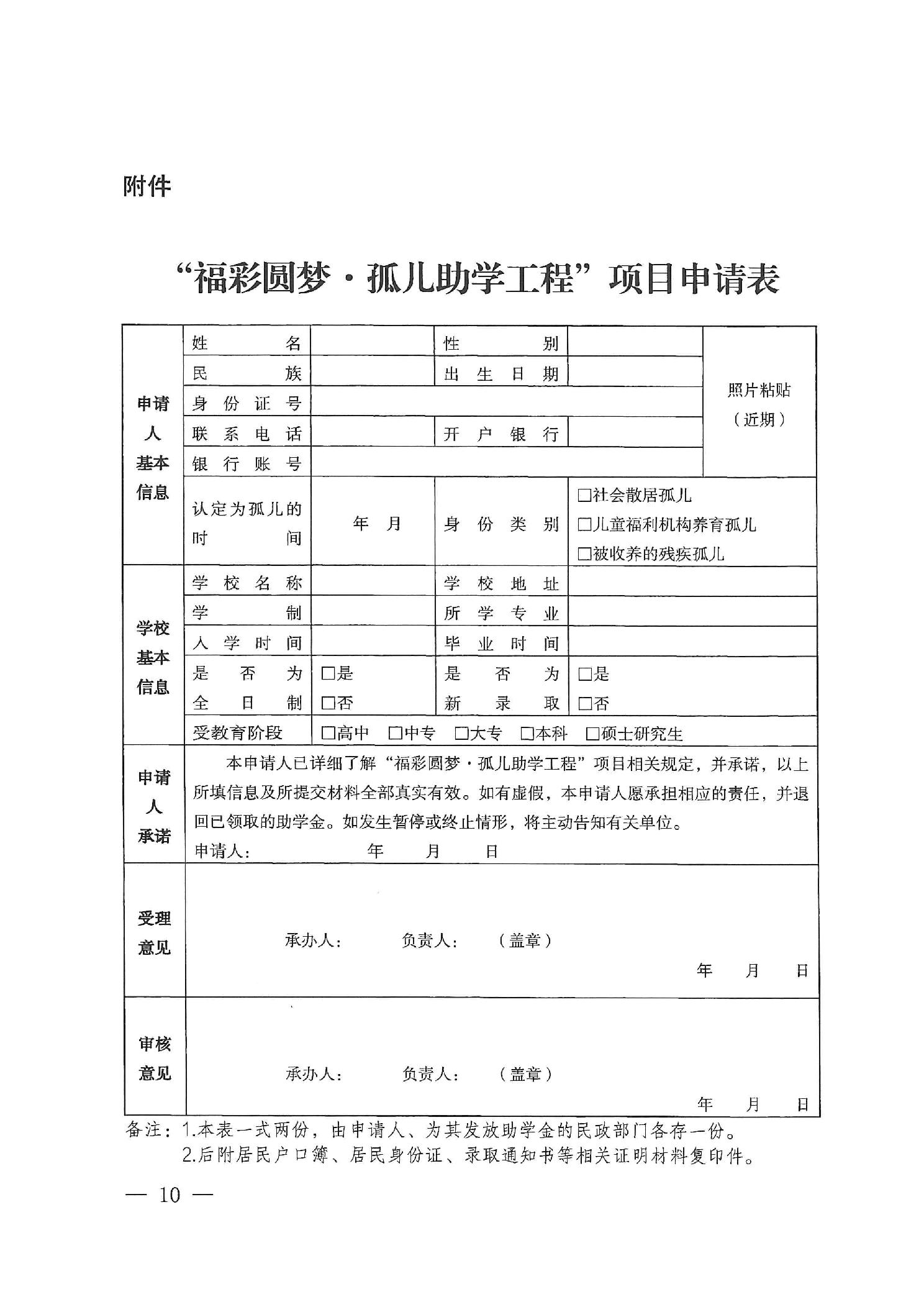 民政部关于印发《“福彩圆梦·孤儿助学工程”项目实施办法》的通知