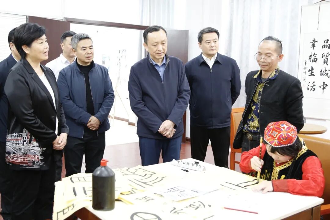 走进城中区残疾人之家,调研组一行参观了文化活动、康复训练、辅助性就业、爱心厨房等功能区域,了解城中区残联“智慧残联+”App功能应用。在文化活动室,张卫星副主席驻足观看一位小女孩手握毛笔认真书写“福”字,他俯身端详,随后向她竖起大拇指。张卫星副主席充分肯定了残疾人之家在整合服务资源、推动精准助残方面取得的扎实成效,他强调,要加强基层残疾人服务阵地建设,用好用活公共文化资源,推动残疾人文化服务更加精准、高效。