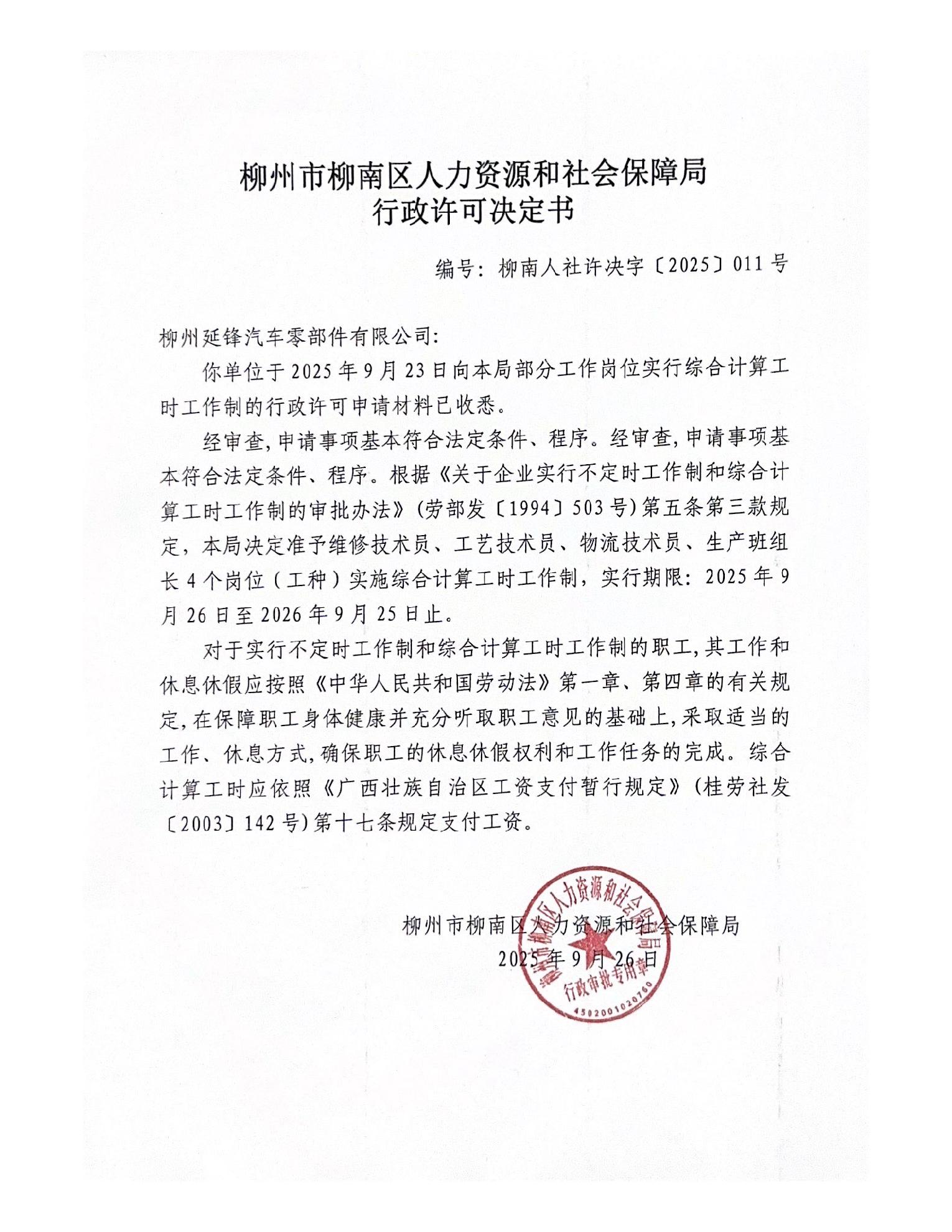 柳州市柳南区人力资源和社会保障局行政许可(2025年9月26日)