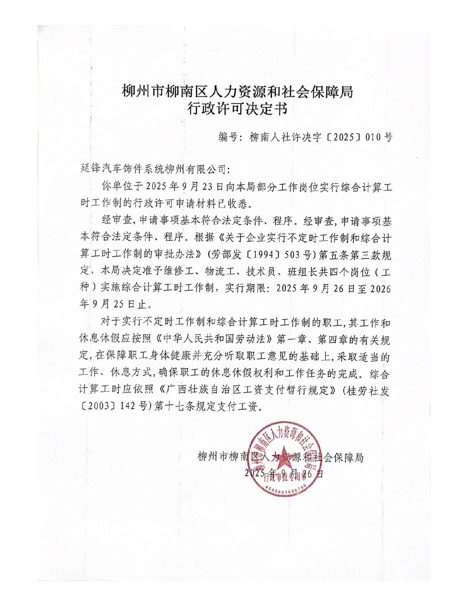 柳州市柳南区人力资源和社会保障局行政许可(2025年9月26日)