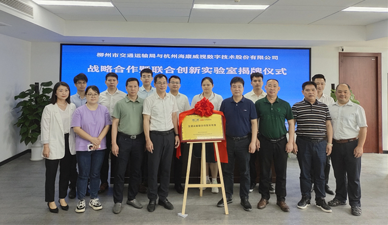 在与会人员的共同见证下,潘远益与凌福共同签署了《柳州市交通运输局-杭州海康威视交通运输联合创新战略合作框架协议》,并为“交通运输联合创新实验室”揭牌,仪式取得圆满成功。