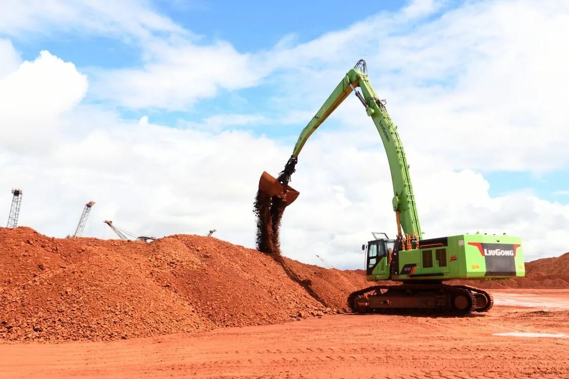 柳工多台挖掘机和矿用卡车在非洲莫桑比克中资企业露天铝土矿作业