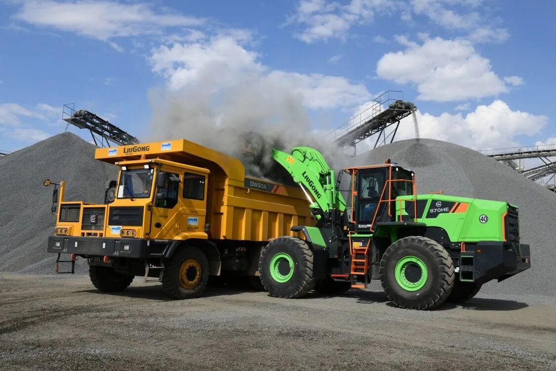 柳工电动装载机和矿用卡车在巴西采石场组合作业