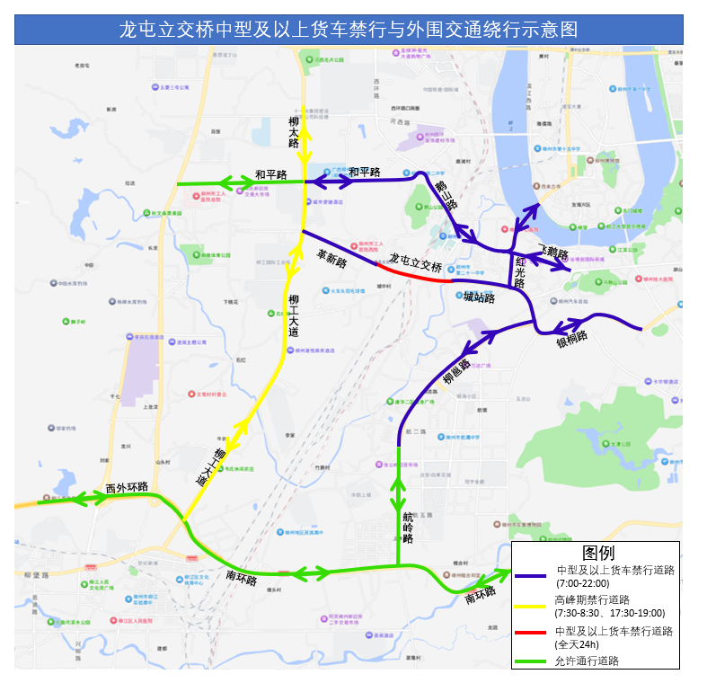 10月29日,“柳州交警”微信公众号发布《关于柳州市龙屯立交桥货车限行和桥梁限重措施调整的通告》,详情如下: