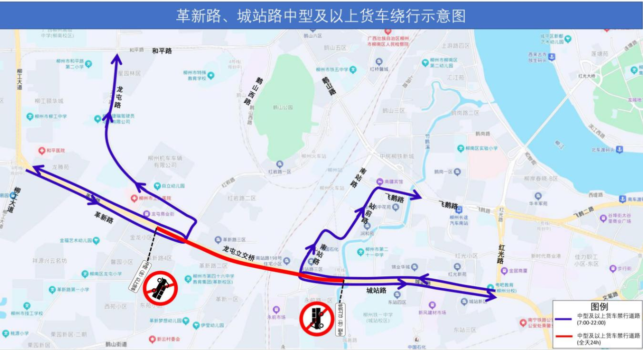 因柳州市龙屯立交桥梁维护工作需要,根据《中华人民共和国道路交通安全法》第三十九条规定,定于2025年11月1日起(结束时间另行通告),对柳州市龙屯立交桥货车限行和桥梁限重措施进行调整,具体通告如下: