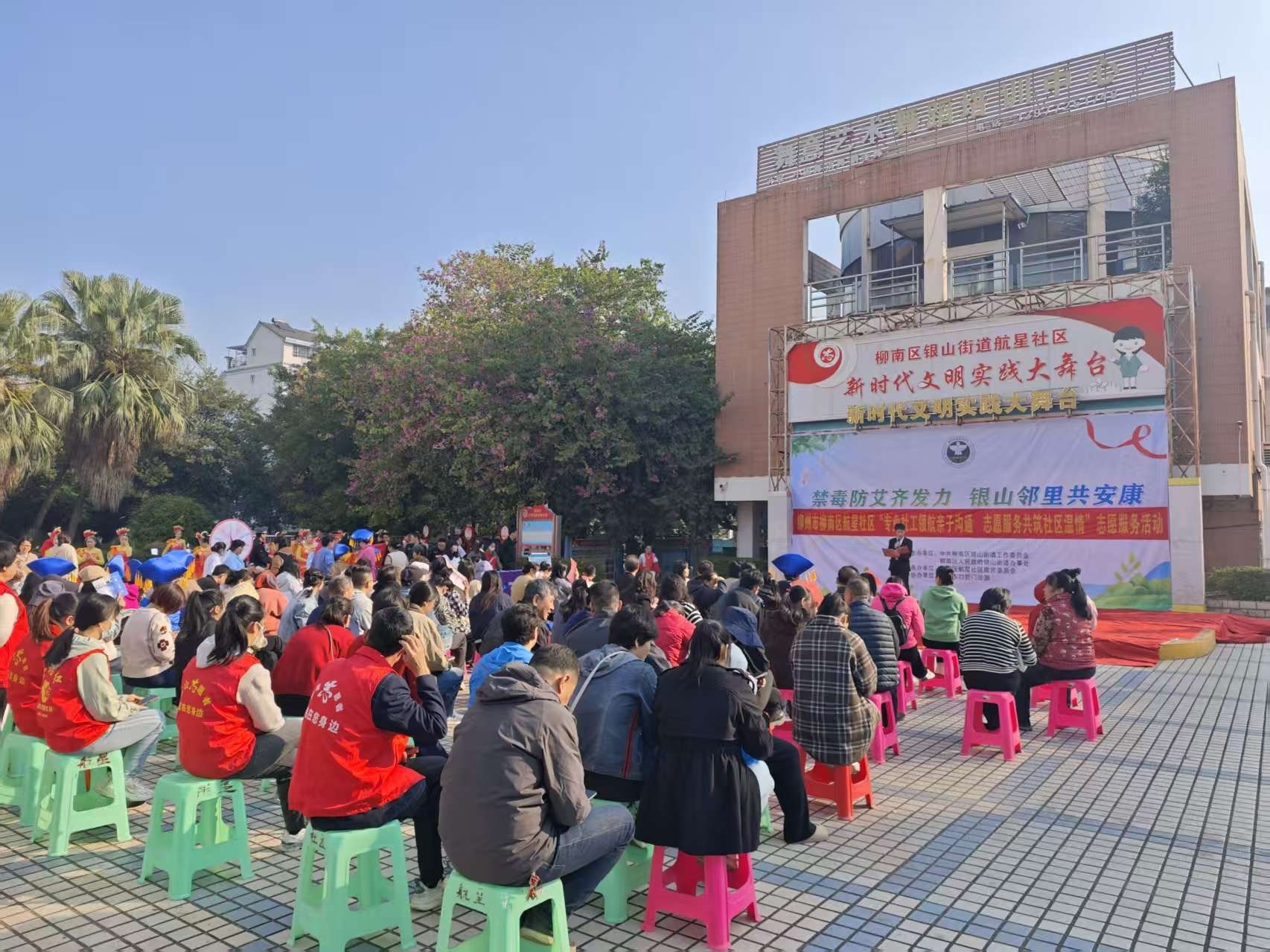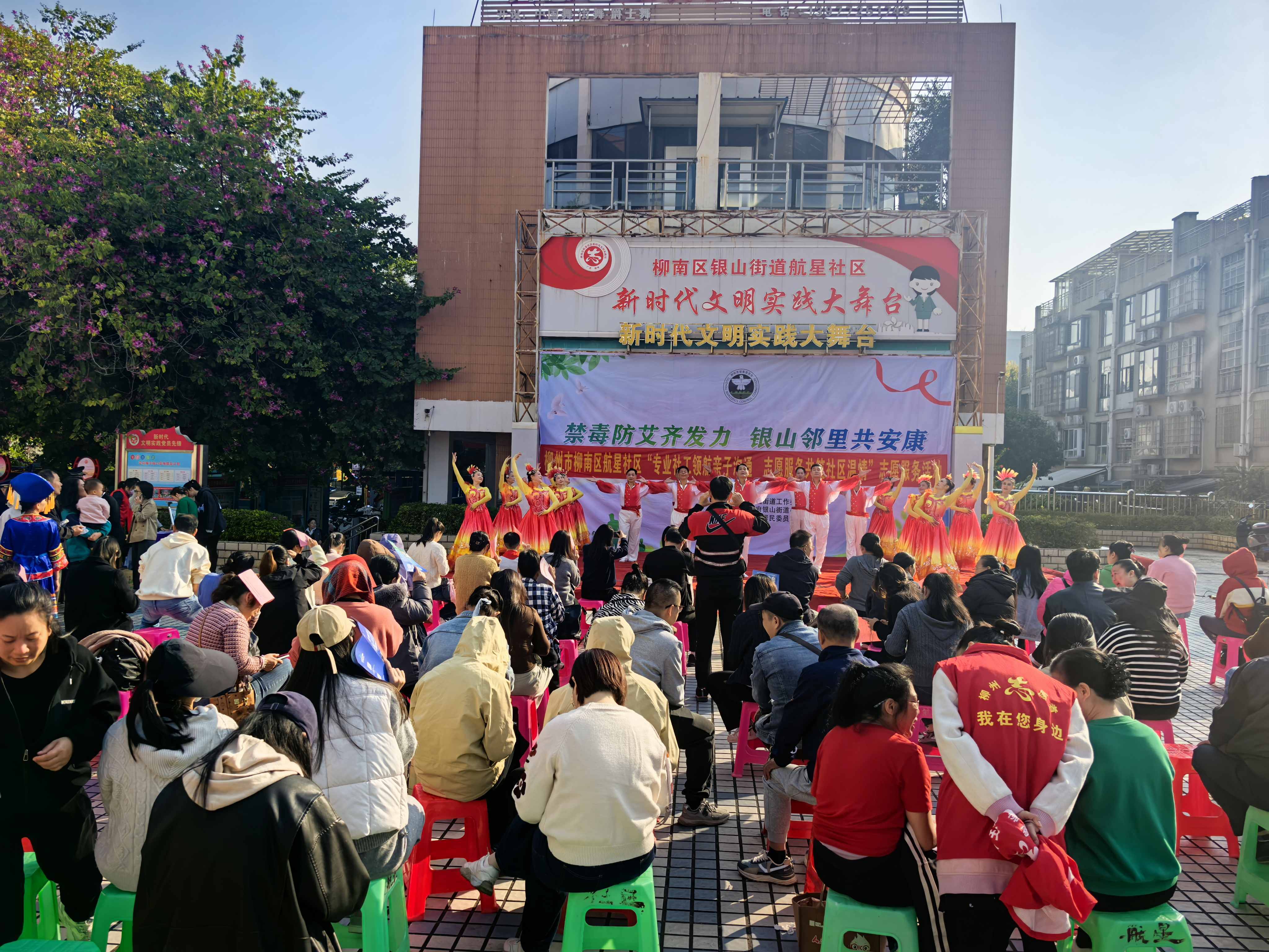 12月1日,在第36个“世界艾滋病日”,银山街道在航星社区举办“禁毒防艾齐发力 银山邻里共安康”主题宣传活动,由中共柳南区银山街道工作委员会、柳南区人民政府银山街道办事处主办,柳南区航星社区居民委员会承办,牙丽尔口腔门诊部协办。活动通过文艺演出、知识问答、展板宣讲、互动游园等多种形式,向居民普及禁毒和防艾知识,提升群众自我保护意识,营造健康、和谐的社区氛围。