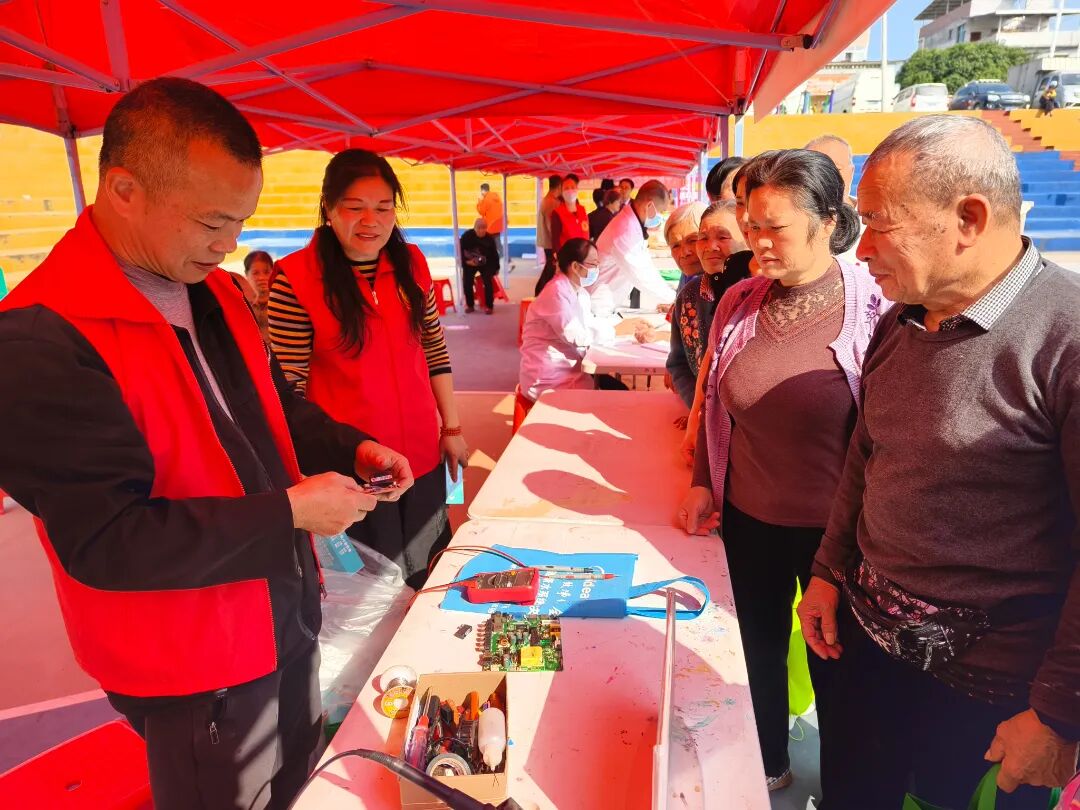 在理论政策宣讲区,志愿者创新采用“拉家常、讲故事、有奖答”的互动模式,围绕移风易俗、民族团结、法律法规等内容,运用地方方言和鲜活案例进行生动解读。便民服务区则汇聚多项暖心实招,家电维修志愿者用精湛的技术让一件件旧物“重获新生”,还向乡亲们耐心讲解保养知识;健康义诊台前,医护人员细致问诊、测量血压,提供专业健康指导;免费理发区特别开设“银发绿色通道”,优先服务老年群众,贴心举措获得广泛好评。