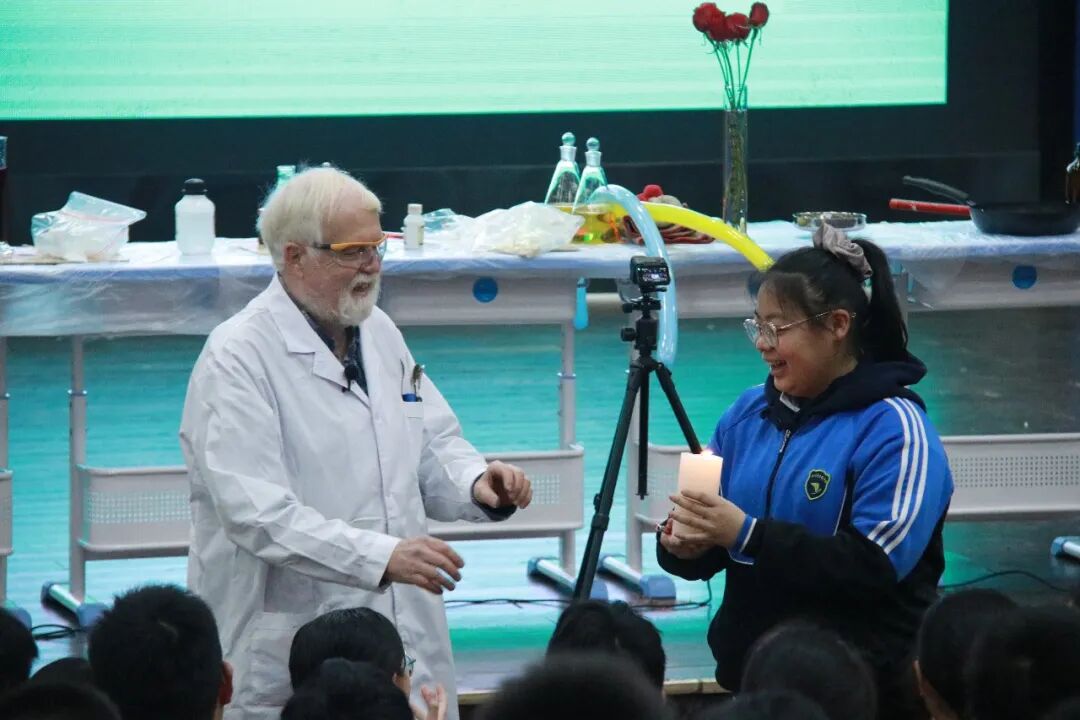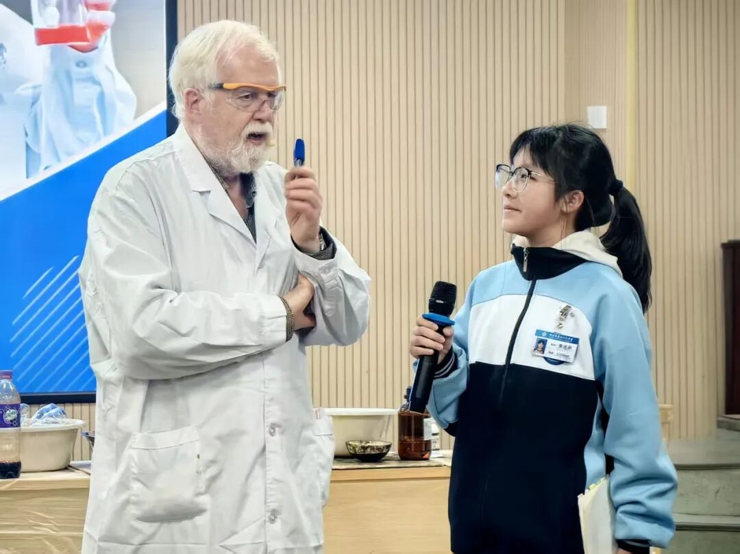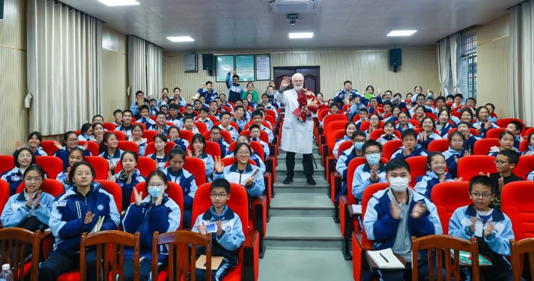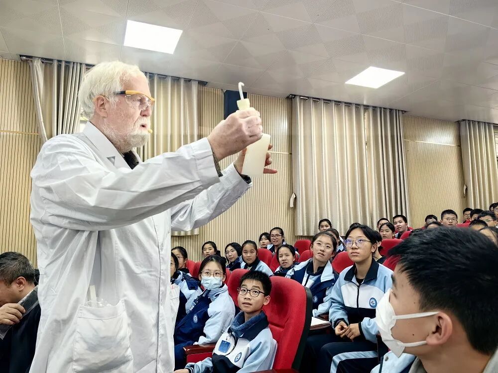 近日,国际化学家、中国政府“友谊奖”获得者、北京化工大学特聘教授戴伟博士(David G. Evans)应邀到柳州市航生路中学、柳州市第四十六中学,为师生们带来了一场沉浸式化学科普讲座,让现场变成充满惊喜的“科学快乐星球”。