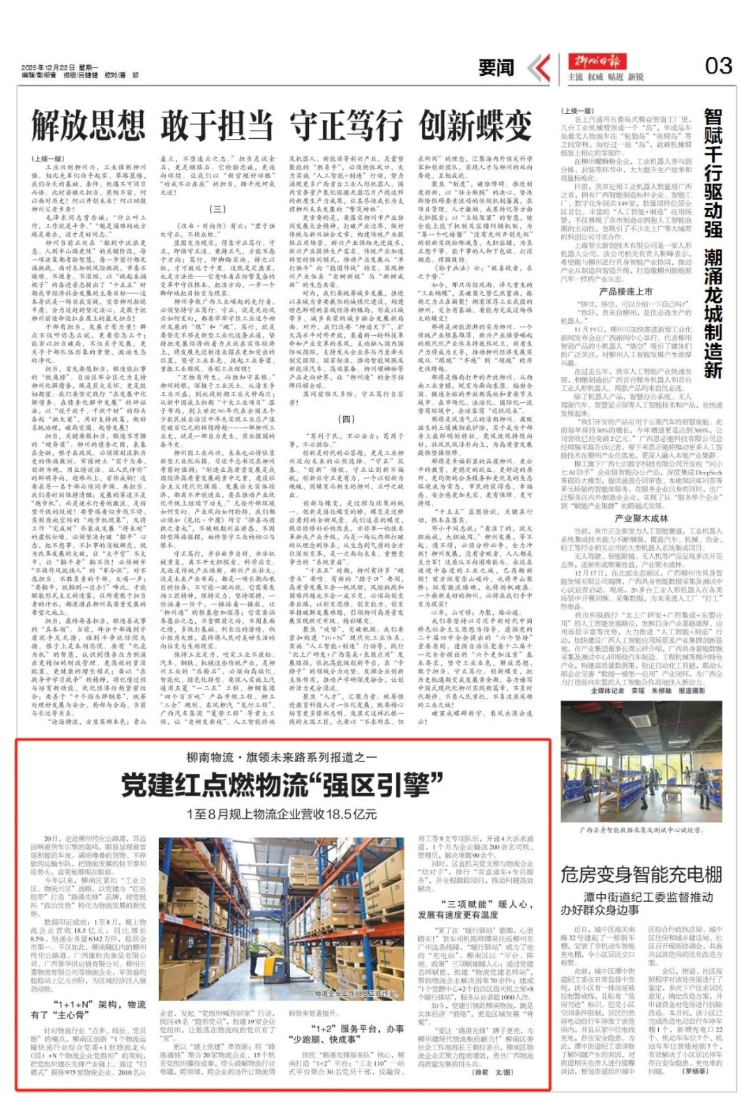 今年以来,柳南区紧扣“工业立区、物流兴区”战略,以党建为“红色纽带”打造“路港先锋”品牌,将党组织“政治优势”转化为物流发展的新优势。