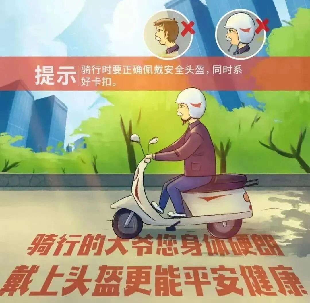 做到佩戴头盔:骑电动自行车时,务必佩戴好安全头盔