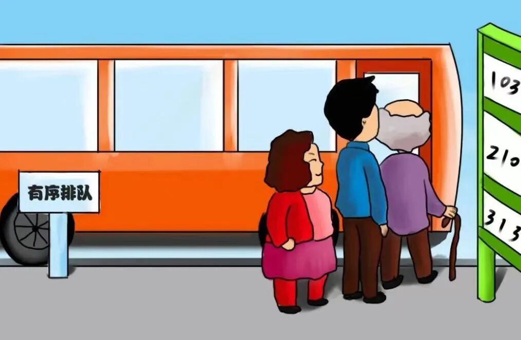 牢记站稳扶好:乘坐公交车时,等车停稳再上下,坐稳或扶好