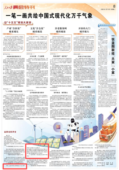 3月10日,《人民日报》8版两会特刊“两会好声音”栏目,其中就传统工业城市主动拥抱新兴产业,加快建设现代化产业体系话题,采访了全国人大代表、广西柳州市委书记张壮。报道摘录如下:
