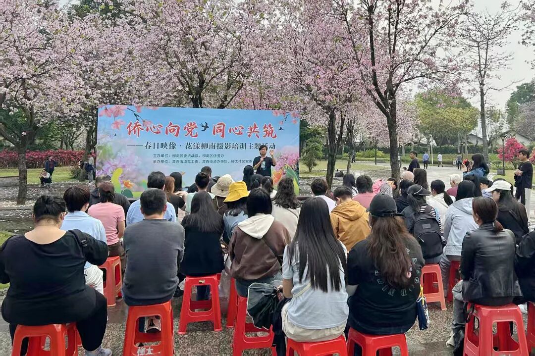 4月3日上午,柳南区委统战部、区侨务办联合潭西街道在河西花卉公园举办“侨心向党 同心共筑——春日映像·花漾柳南”摄影培训活动。辖区归侨代表、侨眷、党员、摄影爱好者及社区居民相聚烂漫花海,在紫荆飘香的春日里,用镜头营造爱侨护侨的良好氛围。