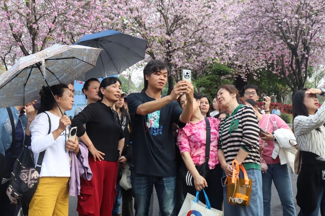 “拍摄紫荆花时,可以尝试低角度仰拍,以蓝天为背景,更能突出花的娇艳。”活动邀请了柳州市老年大学摄影教师进行摄影授课。授课老师从手机摄影入手,围绕构图技巧、拍摄手法等进行详细讲解,重点教授紫荆花特写、花海全景的拍摄方法,以及如何以花为背景拍摄人物。活动中,大家现学现用,在花丛中寻找最佳拍摄角度。授课老师穿梭其间,耐心解答疑问,针对拍摄中出现的问题及时指导纠正。