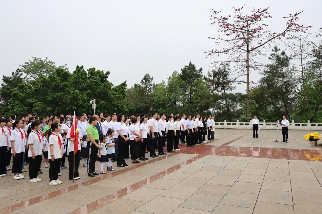 柳州市烈士陵园内松柏苍翠,烈士纪念塔巍然矗立,现场庄严肃穆。全体人员在革命烈士纪念碑前整齐列队、脱帽,齐声高唱中华人民共和国国歌。随后全体人员向革命烈士默哀,在静默中追思英烈事迹,感念英烈奉献。默哀结束后,全体参与人员手持鲜花,有序前往烈士墓地,依次向烈士敬献鲜花;祭扫结束后,大家主动清扫擦拭烈士墓碑,用实际行动缅怀先烈、致敬英雄。