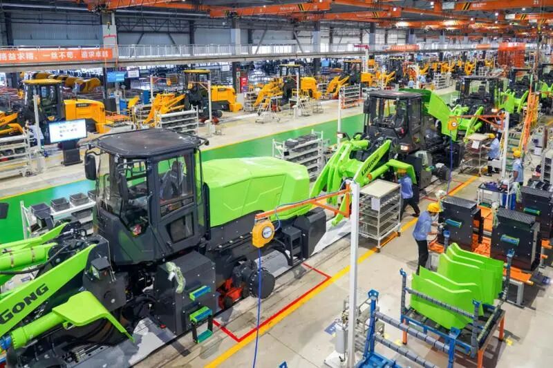 柳工装载机智能工厂装配线。(资料图)
