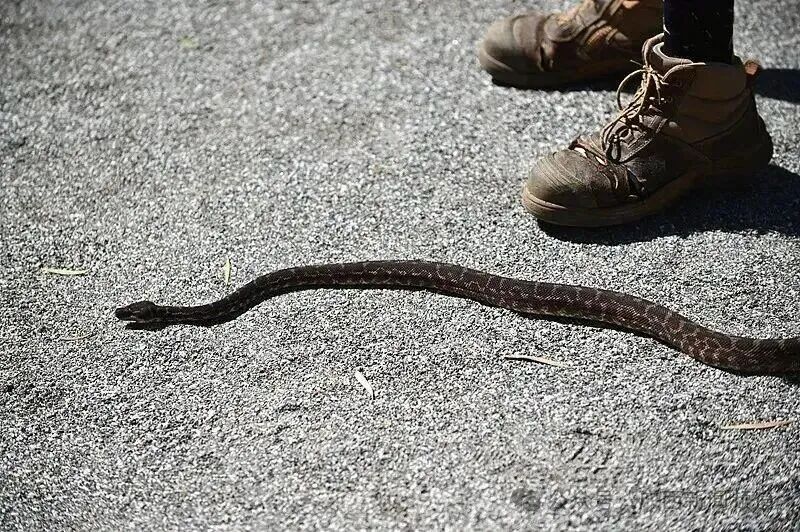 ▶做好个人防护:前往草地、树林、山区等蛇类活跃区域,应尽量穿着长袖长裤、高帮鞋子,并将裤脚绑紧,避免皮肤裸露在外。