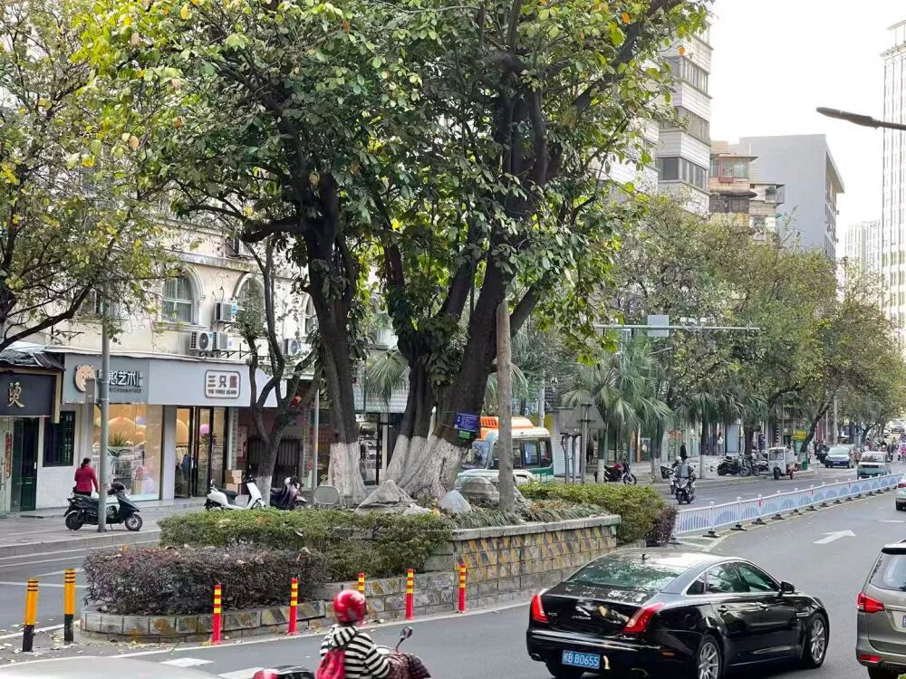 柳侯公园退休职工郭培新还记得,“留树还是留路”当时成为多个部门争论的焦点。最终,柳州决定在道路正中修建舟形安全岛,让古树在其中安坐。