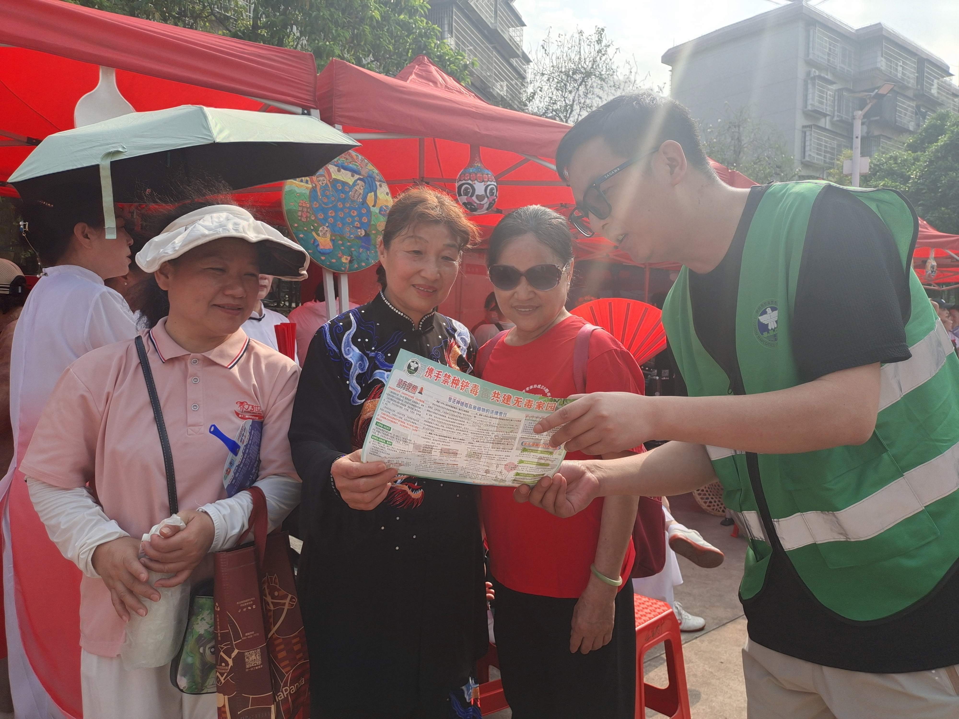 此次宣传共发放禁毒资料200余份,服务咨询群众80余人次,让居民在感受传统文化魅力的同时,牢记禁种铲毒义务,增强法制观念。