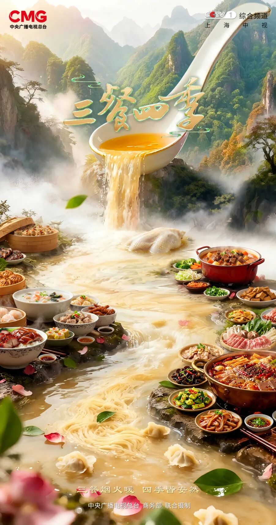 《三餐四季》第四季是中央广播电视总台与商务部联合摄制的大型美食文旅季播节目。节目立足传承弘扬中华饮食文明,聚焦中国大地风味美食,通过一省双城的探访,生动讲述美食背后的历史源流、文化故事,系统呈现中华饮食文明的深厚积淀与传承发展,展现全国各地丰饶物产、健康丰富的百姓餐桌,尽显满满的人间烟火气与热气腾腾的美好生活。该节目于CCTV-1周末晚黄金时段播出,每期90分钟。