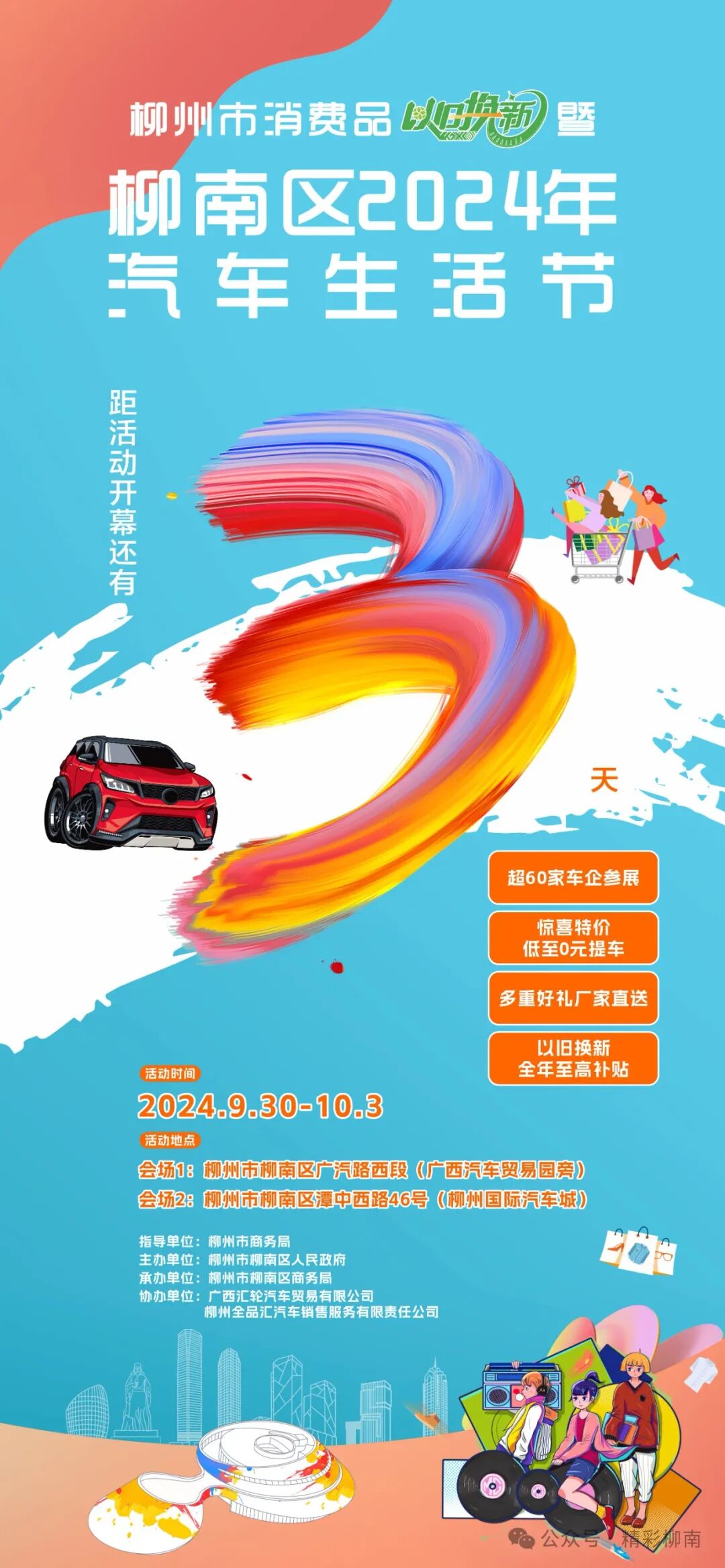 活动时间9月30日至10月3日共计4天,广西汽贸园(广汽路)、柳州国际汽车城(潭中西路)两个会场等你来!另外,集中展示之后,整个十月汽贸园都有车企在门店外继续开展场外促销活动哟!