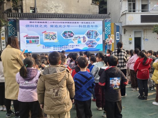 在科技浪潮澎湃的时代浪潮下,一场汇聚希望与梦想的科技嘉年华暨“双减”成果展示家长开放日活动,12月19日下午在柳州市柳邕路第二小学崭新的操场上热烈启幕。此次活动由柳石街道办事处、红阳社区关工小组联合柳南区科技局、柳州市柳邕路第二小学精心打造,以“燃科技之光做追光少年”为主题,照亮了孩子们探索科学的道路。1000余名柳邕二小学生参加了此次活动。