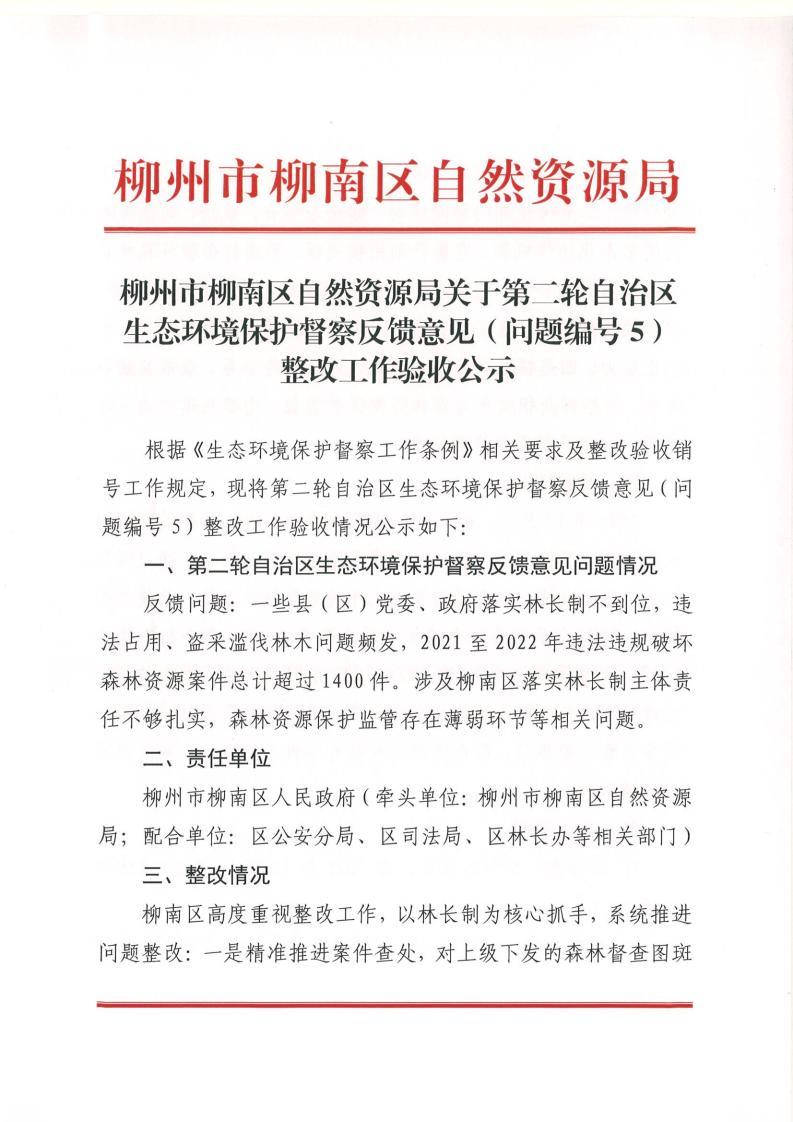 柳州市柳南区自然资源局关于第二轮自治区生态环境保护督察反馈意见(问题编号5)整改工作验收公示