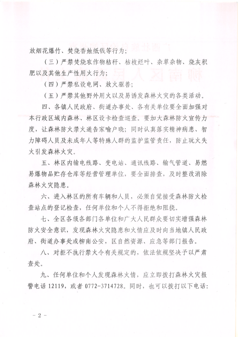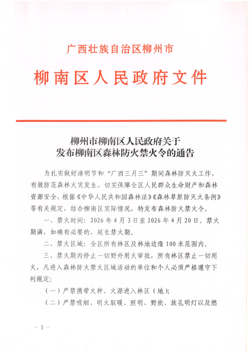柳州市柳南区人民政府关于发布柳南区森林防火禁火令的通告