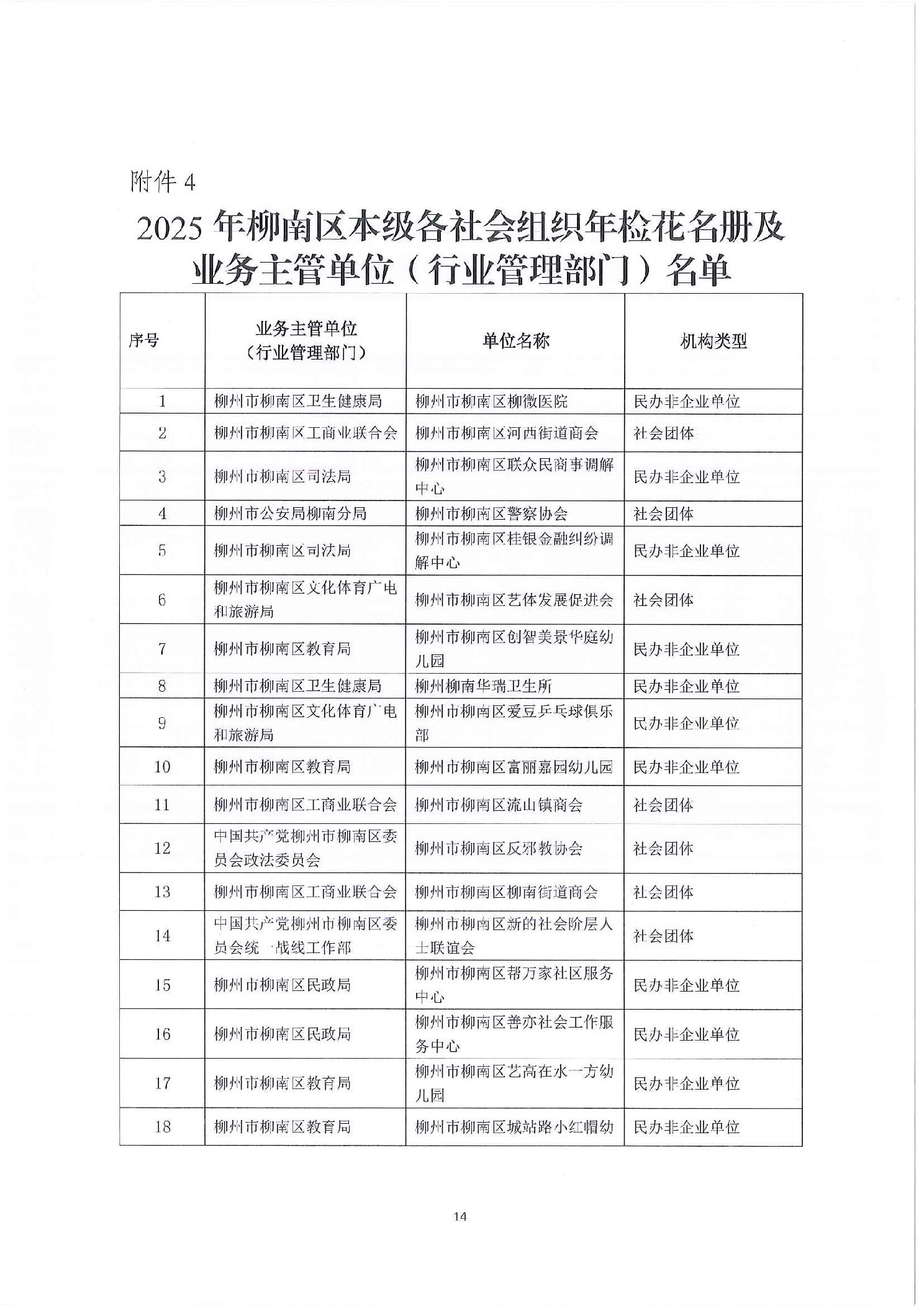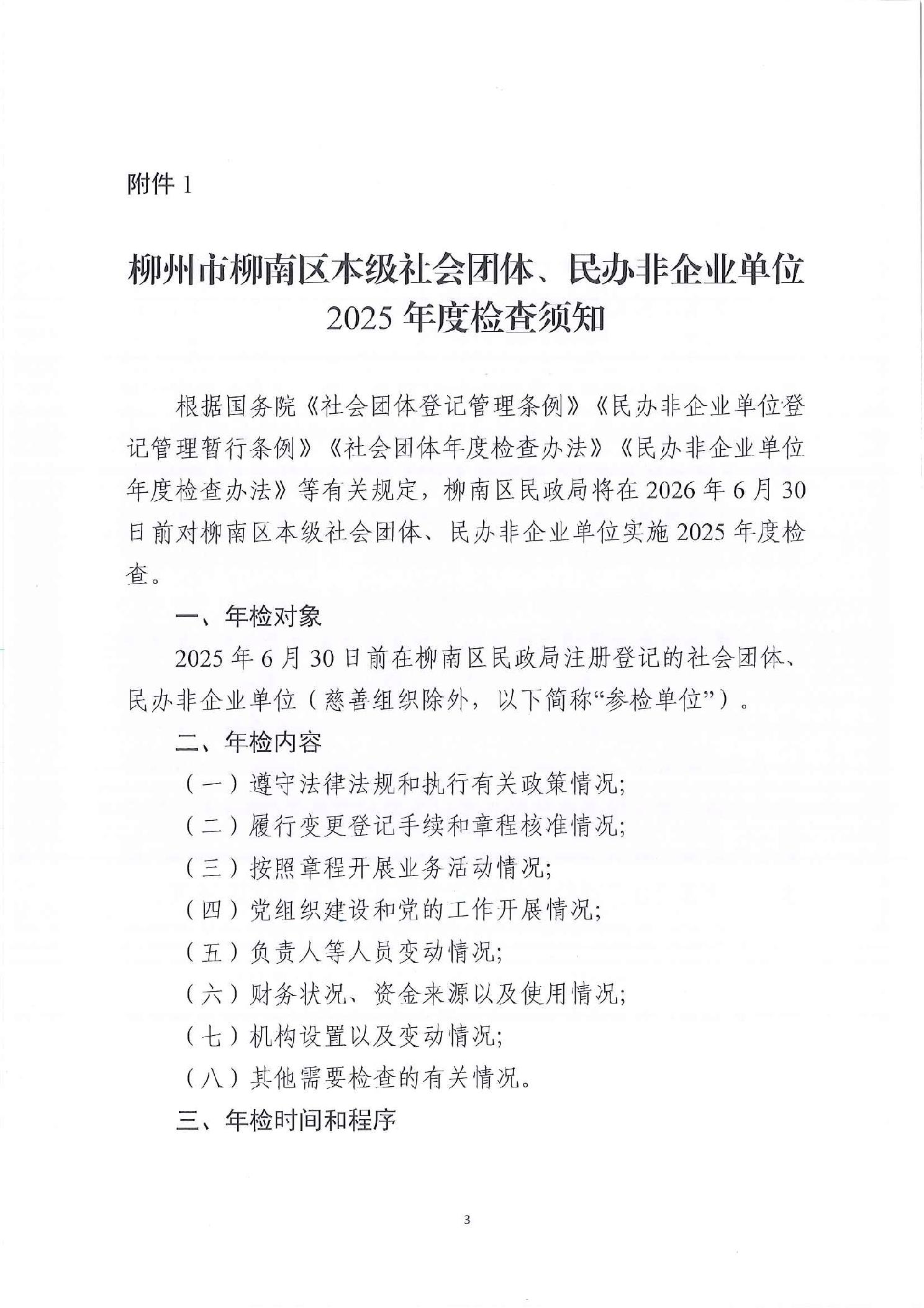 柳州市柳南区民政局关于开展本级社会团体、民办非企业单位2025年度检查的通知