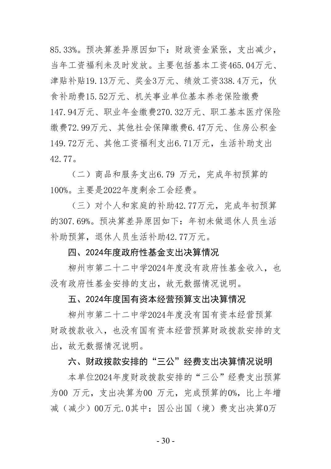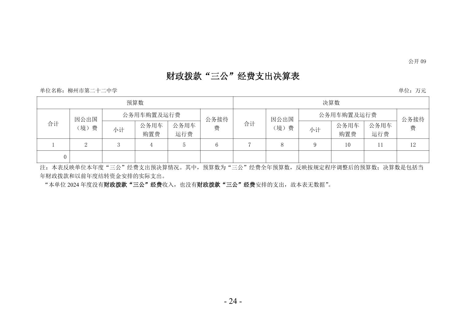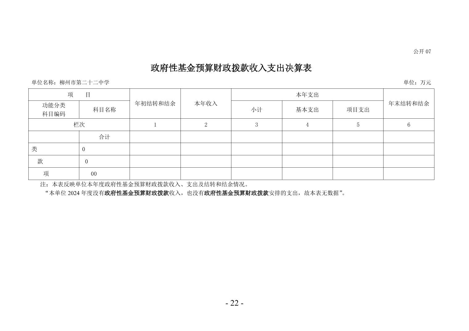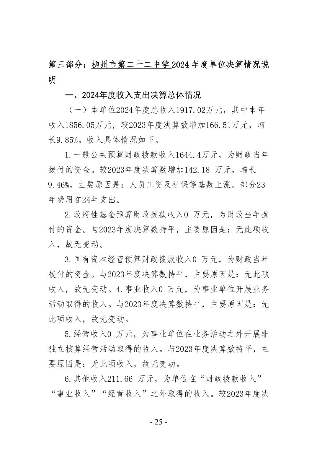 柳州市第二十二中学2024年度单位决算公开