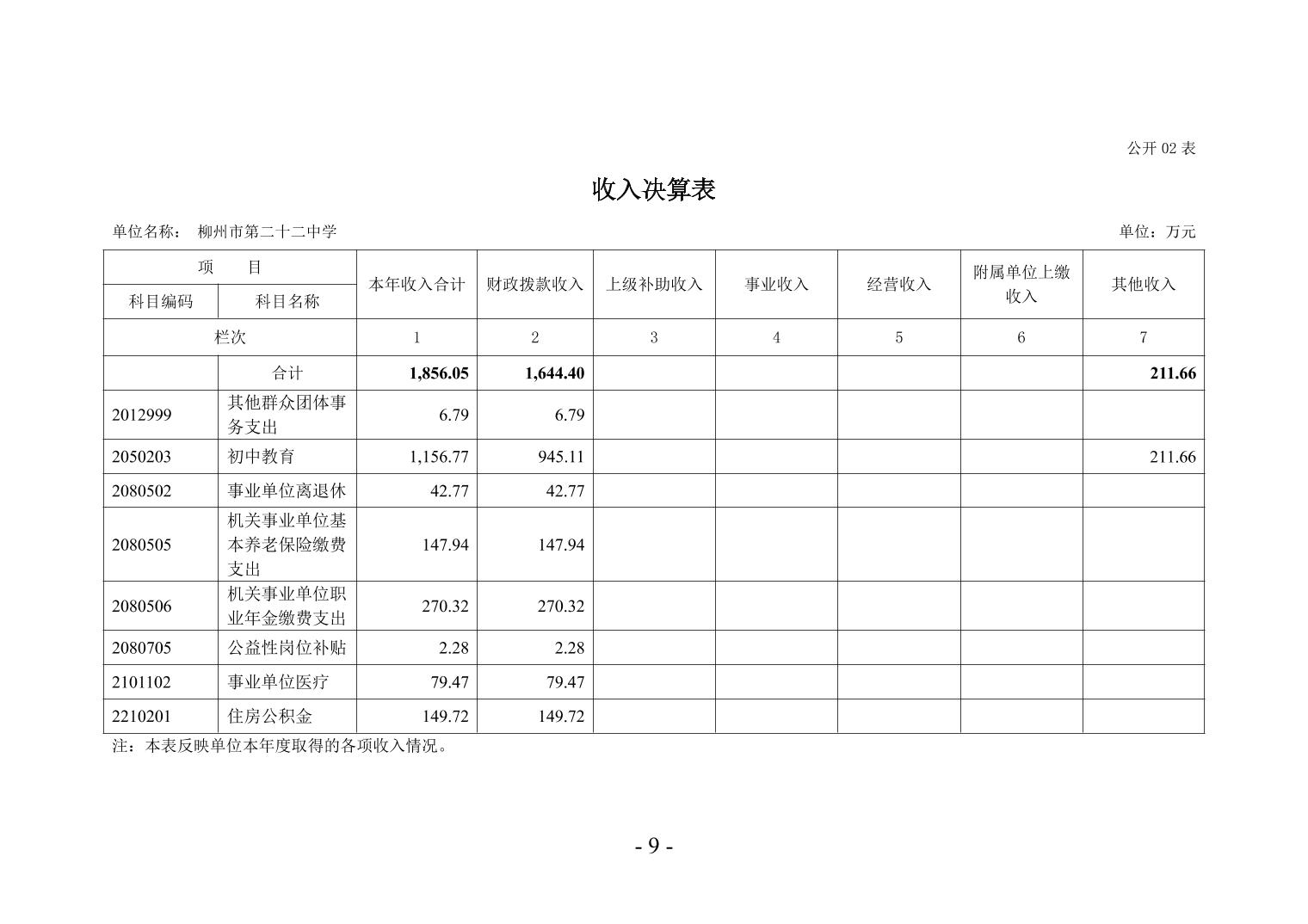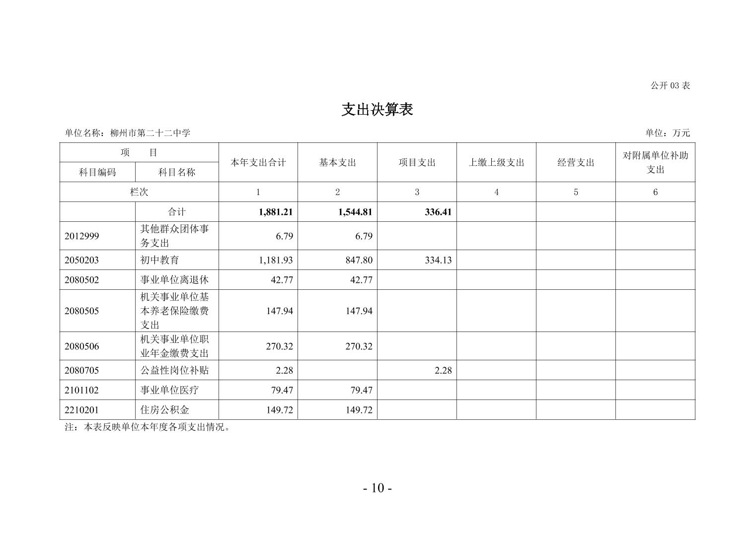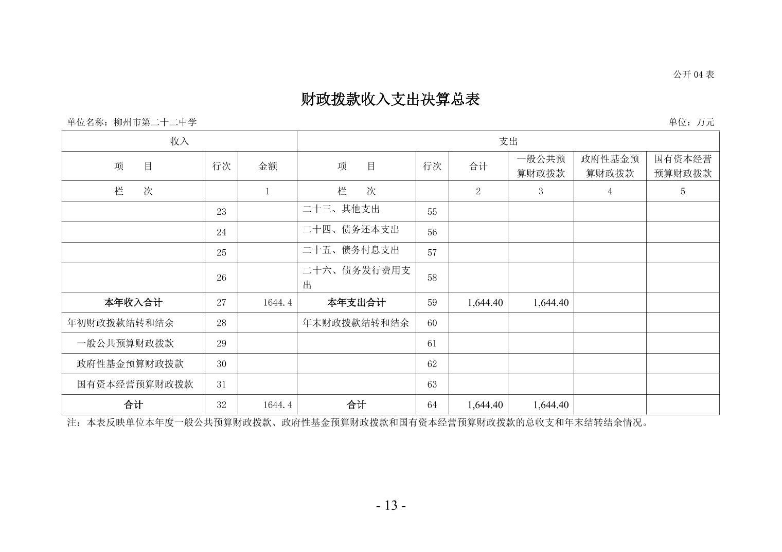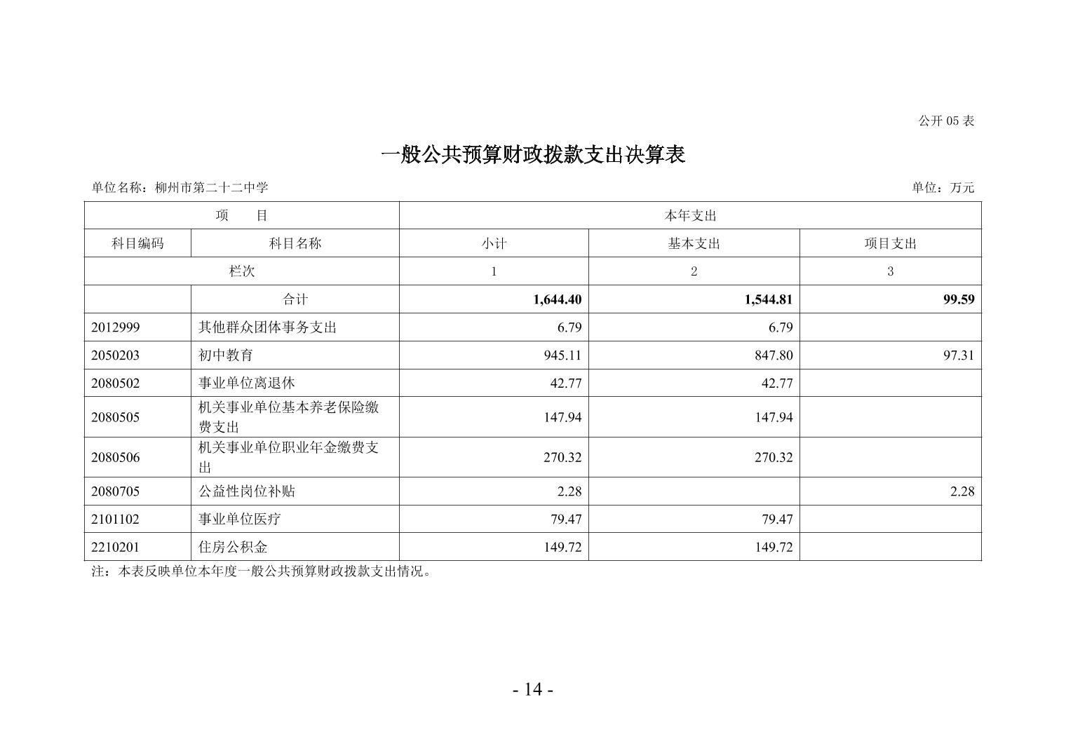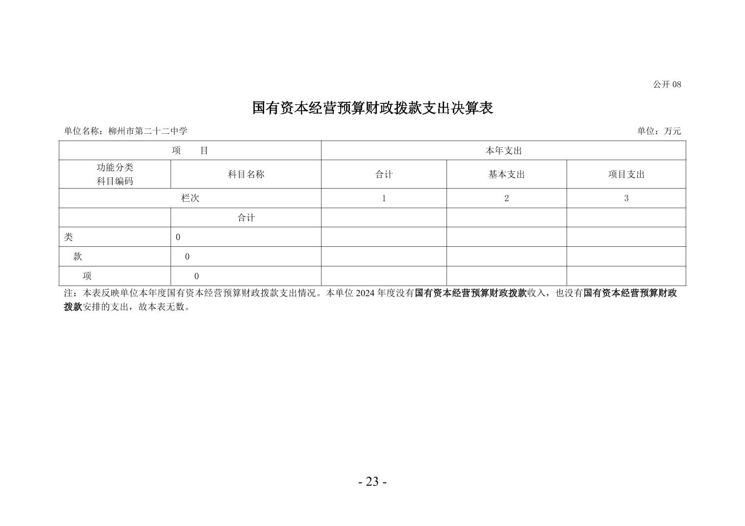 柳州市第二十二中学2024年度单位决算公开