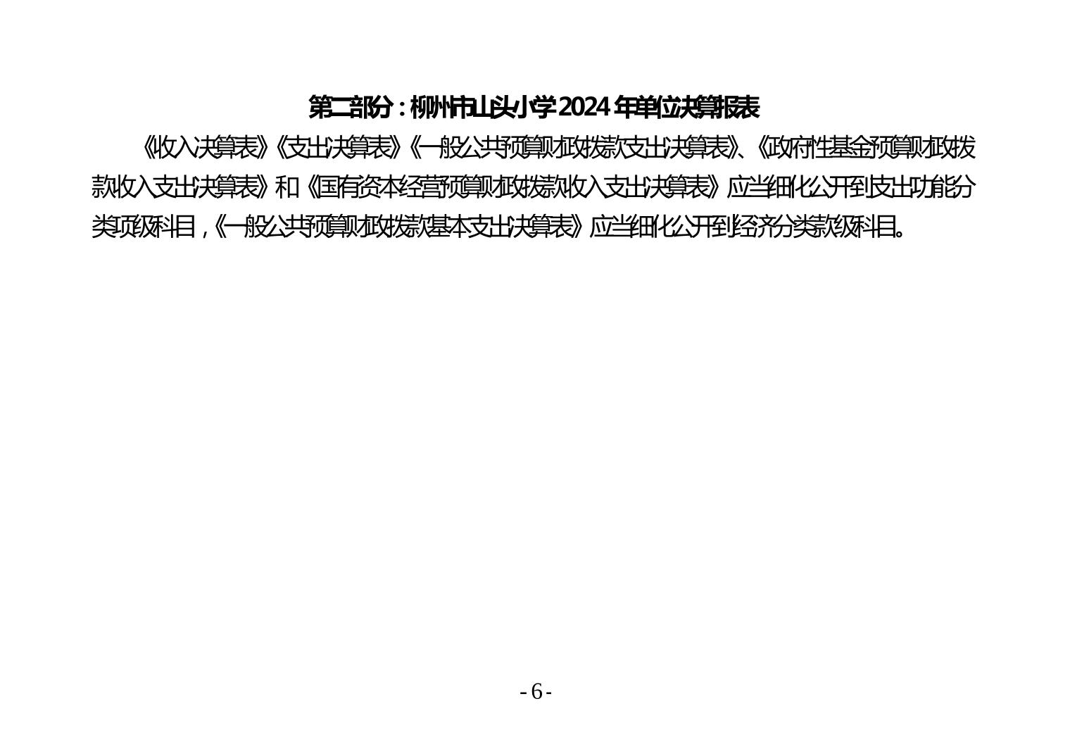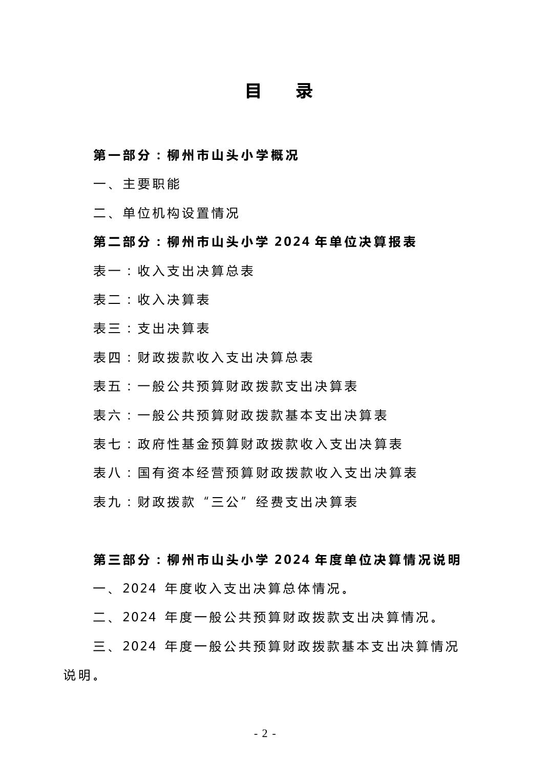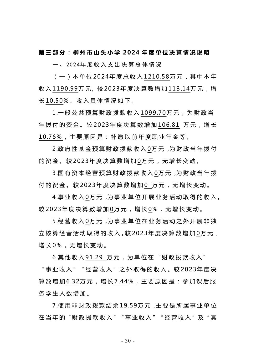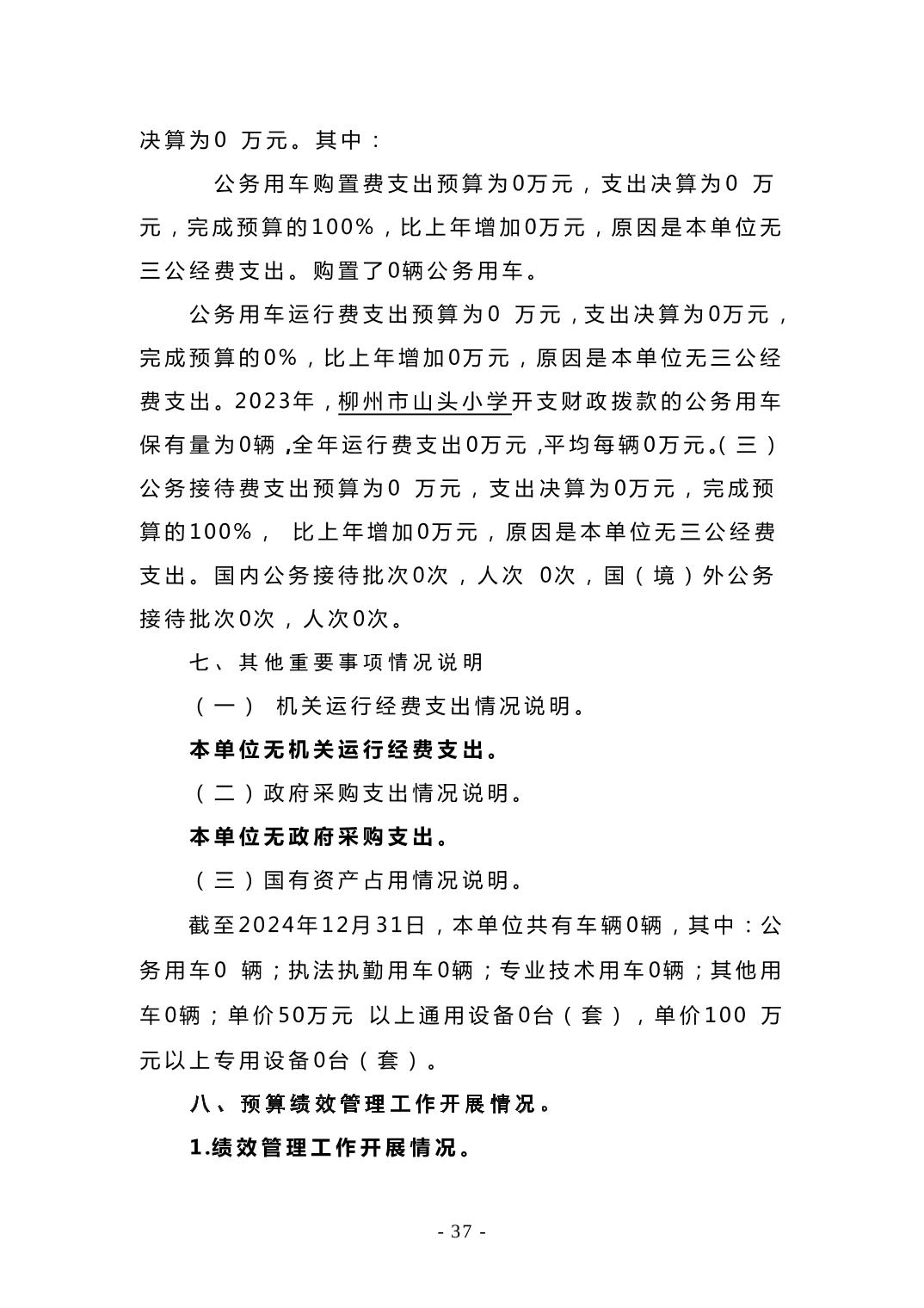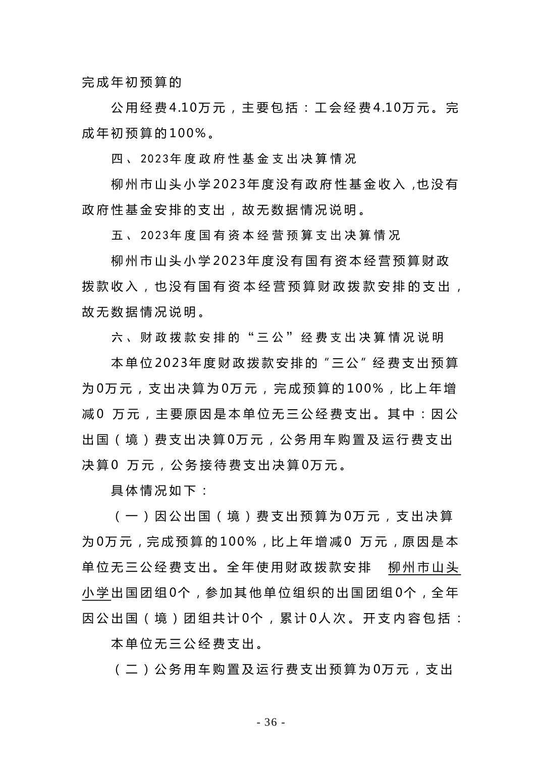 柳州市山头小学2024年度单位决算公开