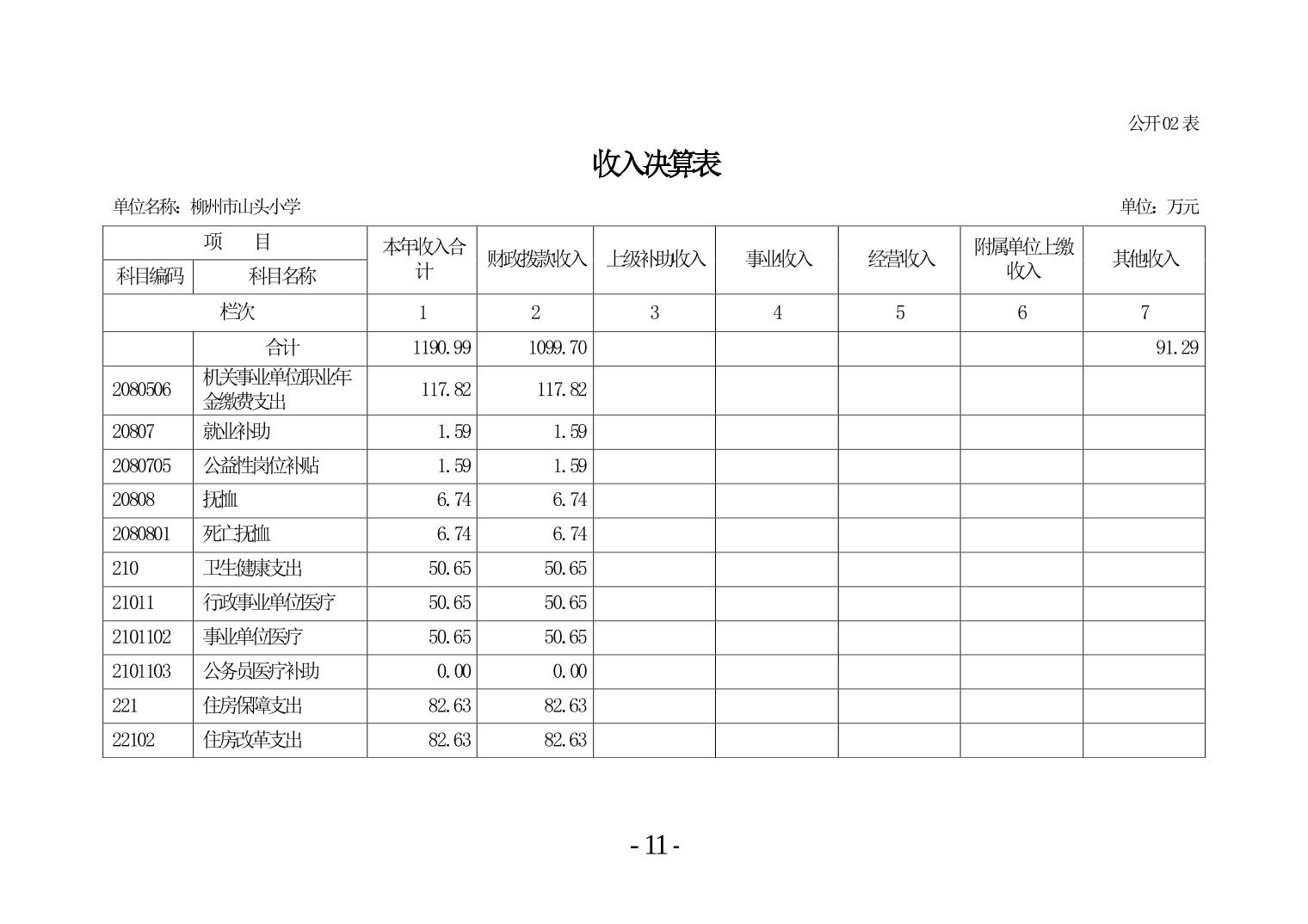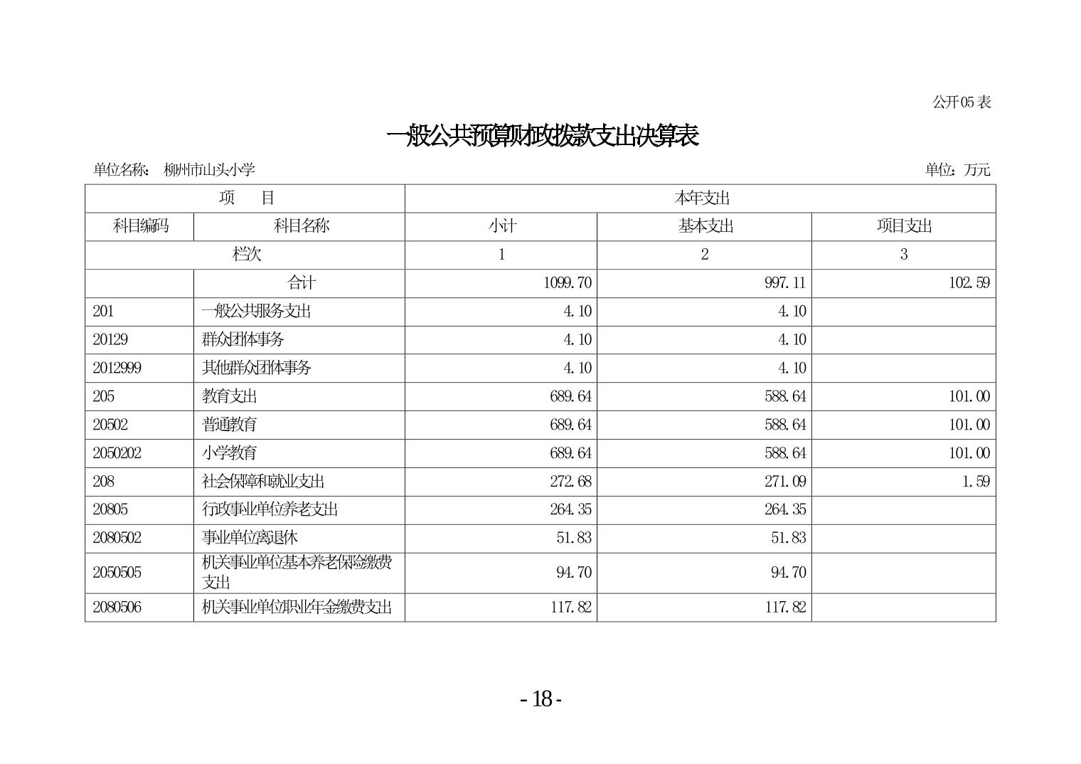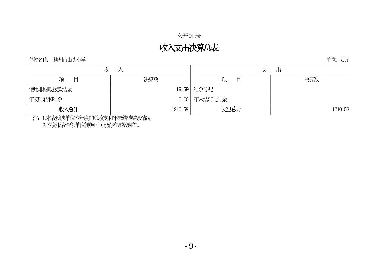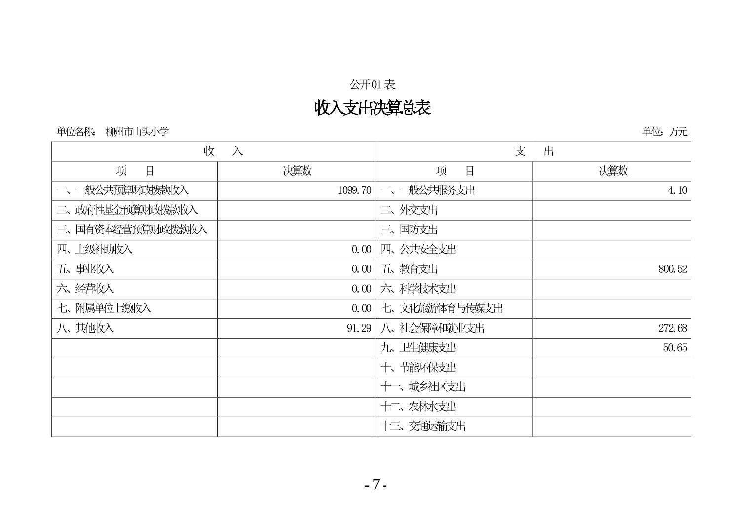 柳州市山头小学2024年度单位决算公开