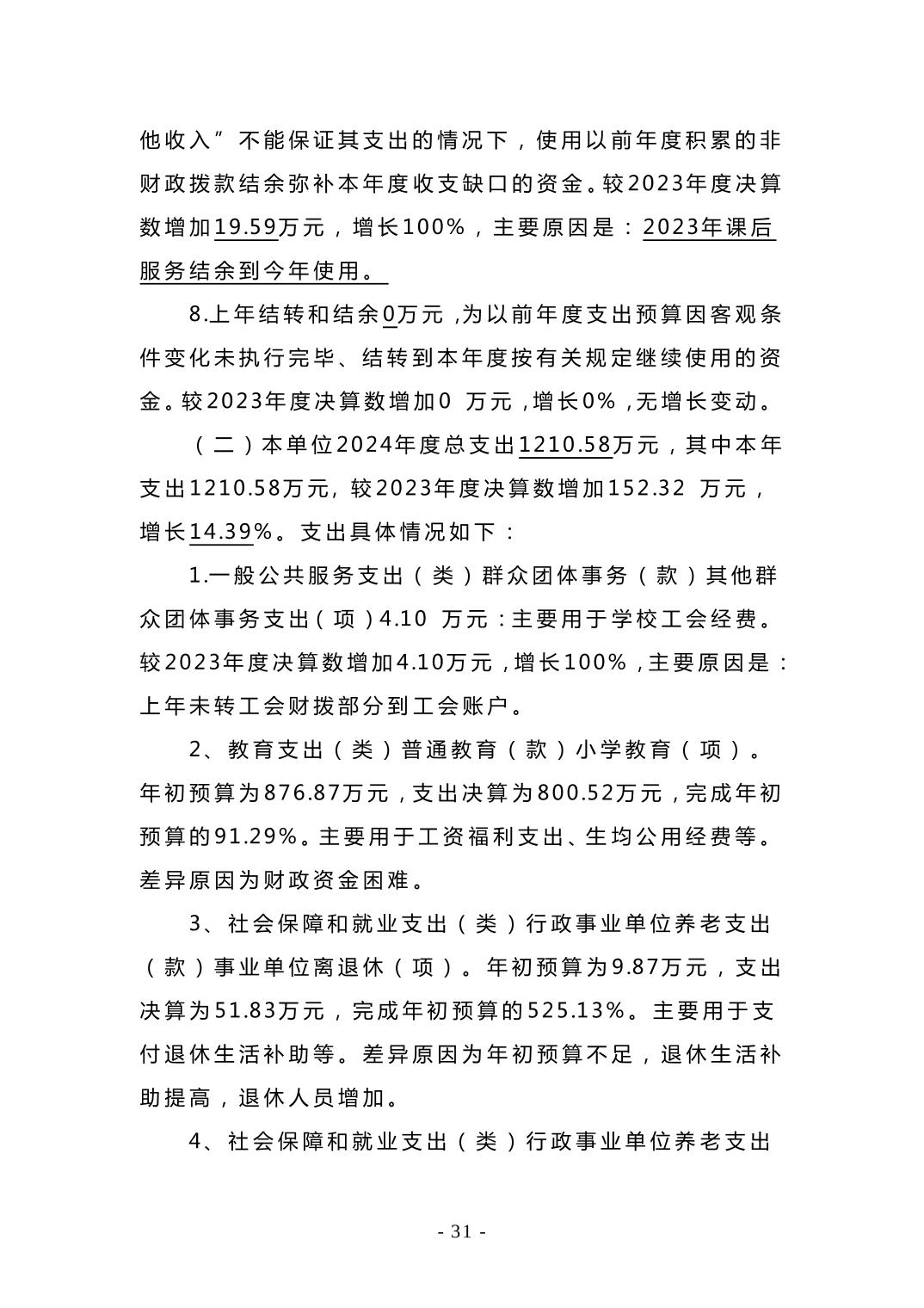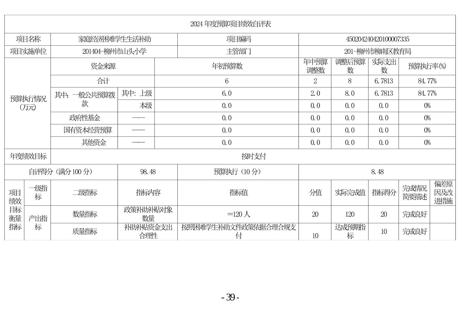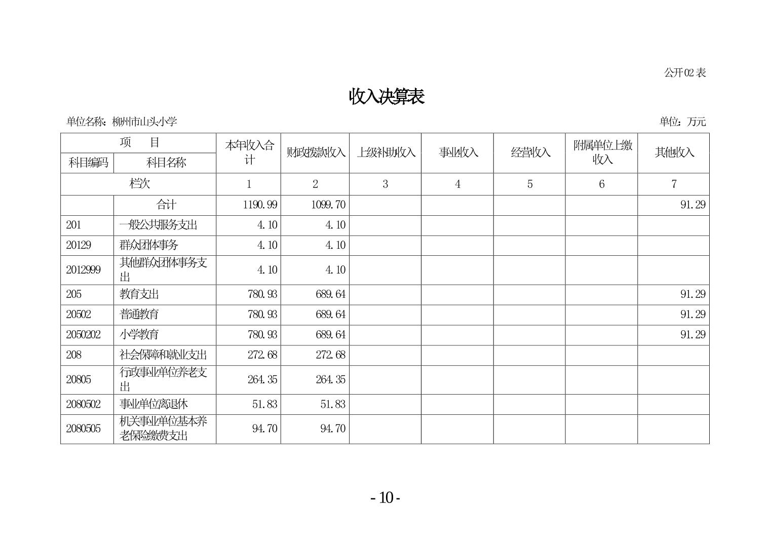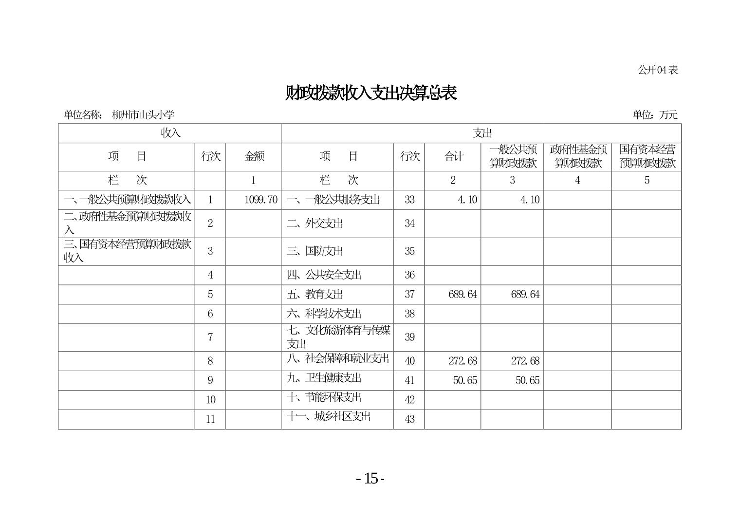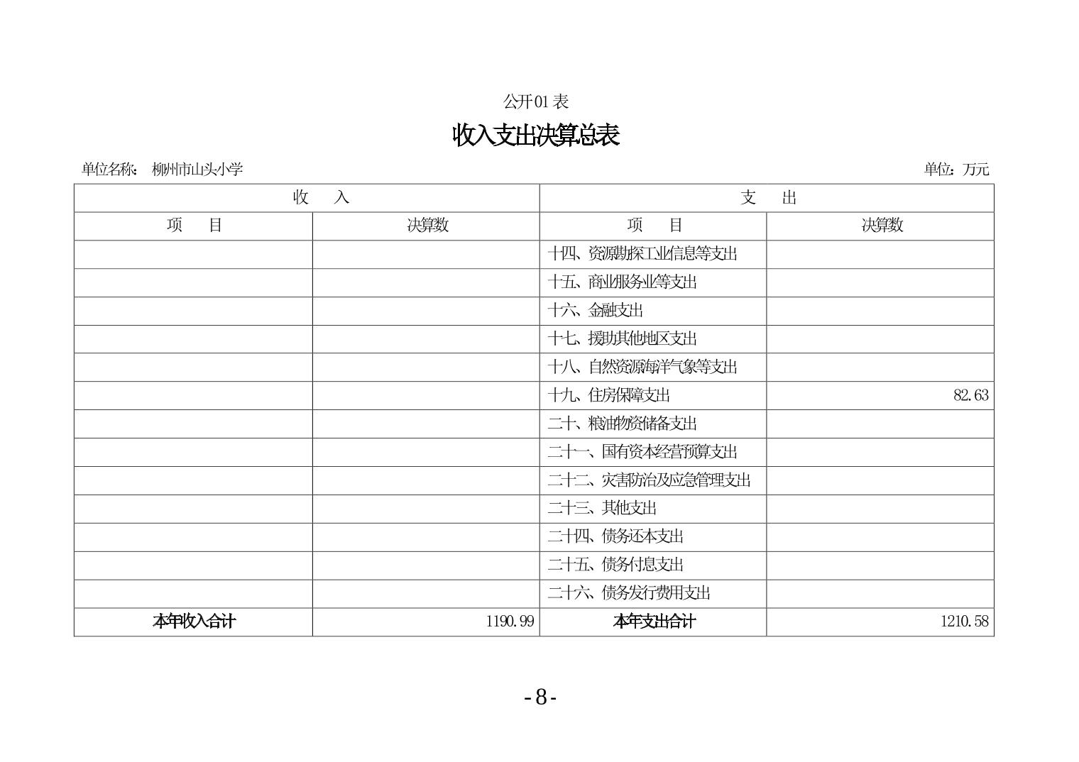 柳州市山头小学2024年度单位决算公开