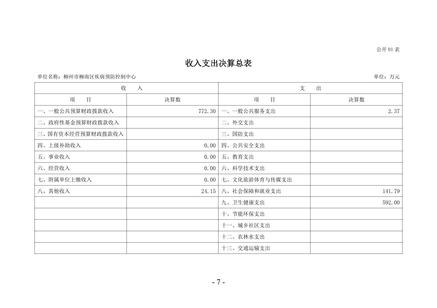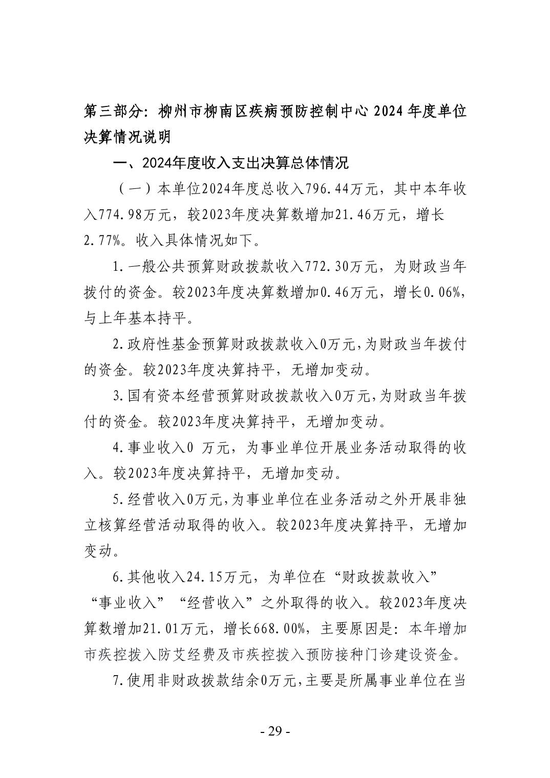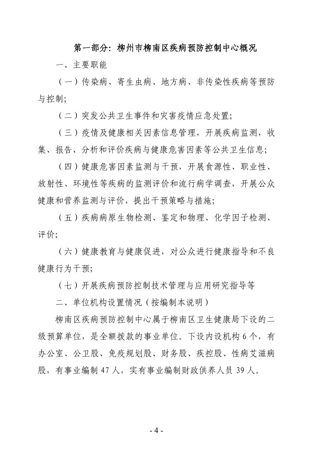 柳州市柳南区疾病预防控制中心2024年度单位决算公开