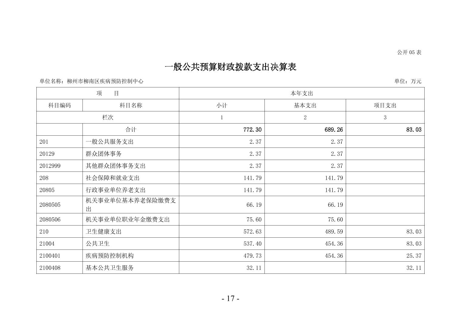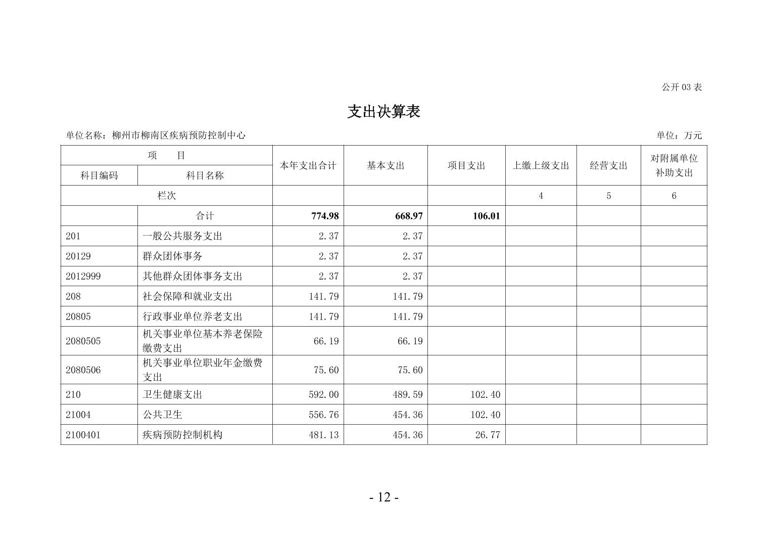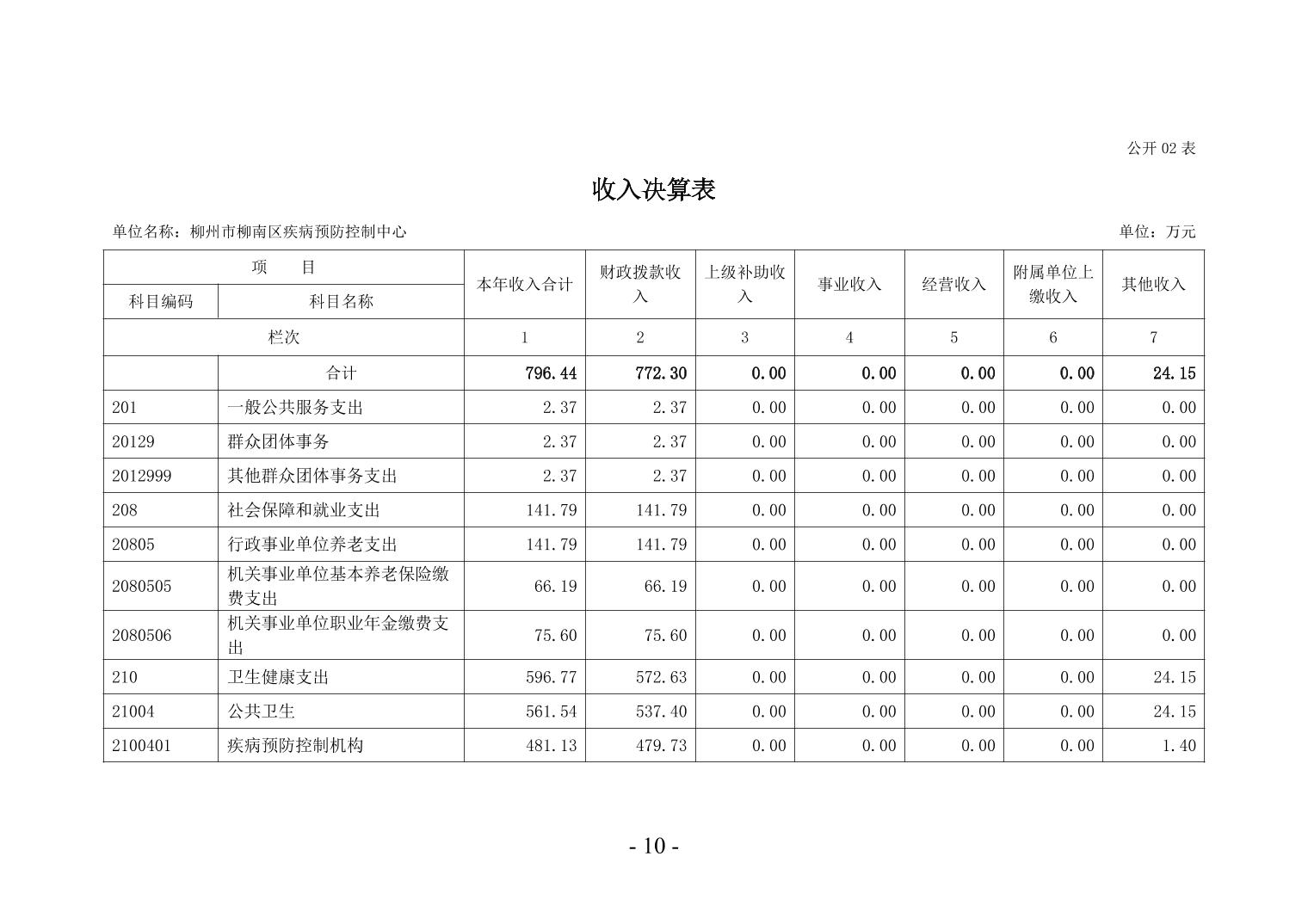 柳州市柳南区疾病预防控制中心2024年度单位决算公开