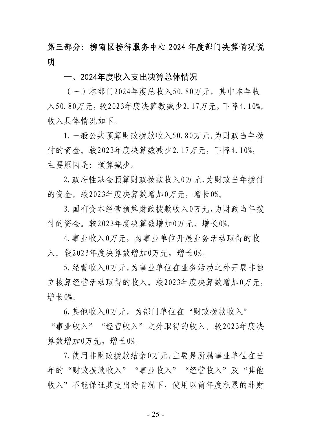 柳州市柳南区接待服务中心2024年度部门决算公开