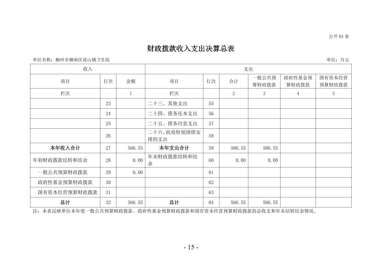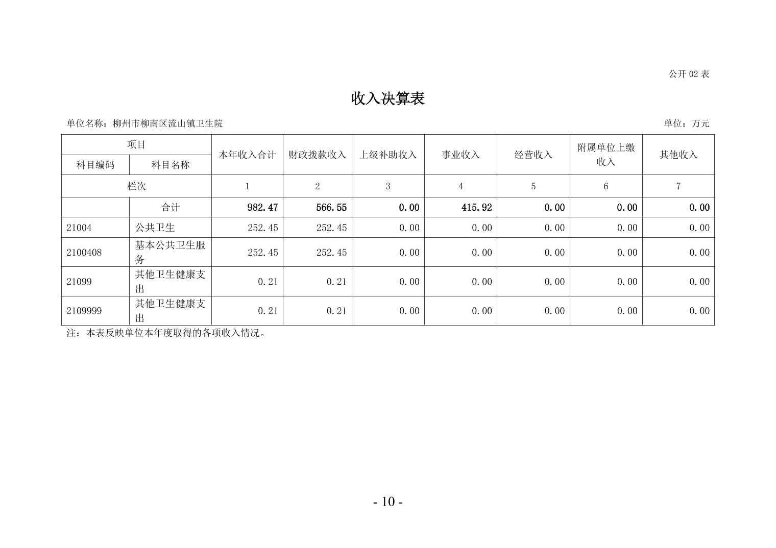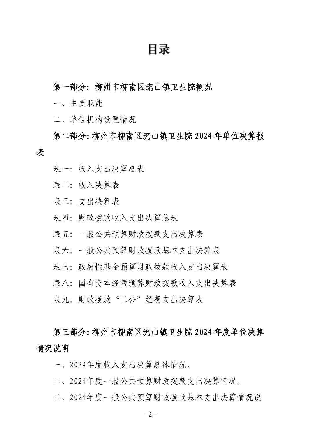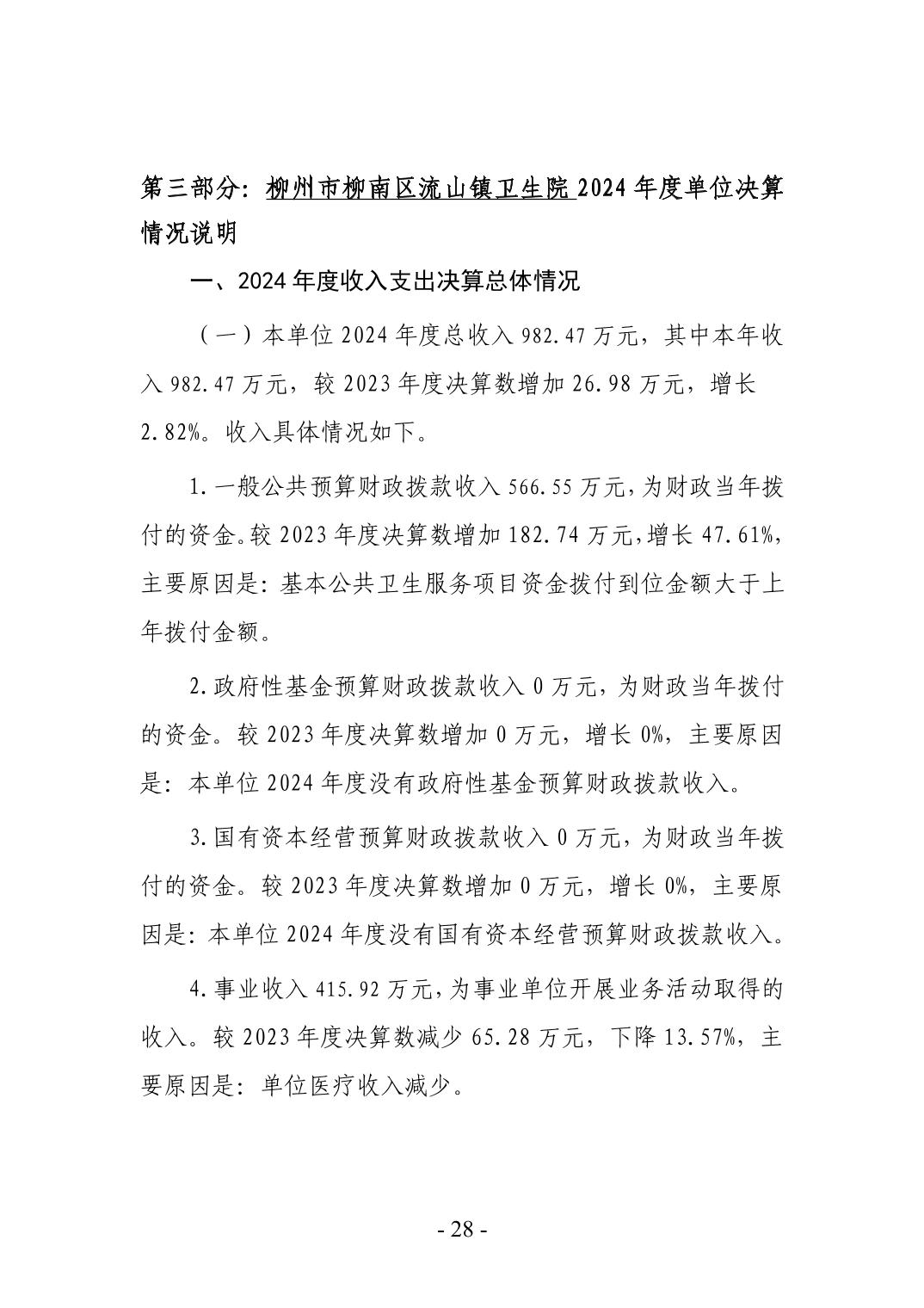 柳州市柳南区流山镇卫生院2024年年度决算公开