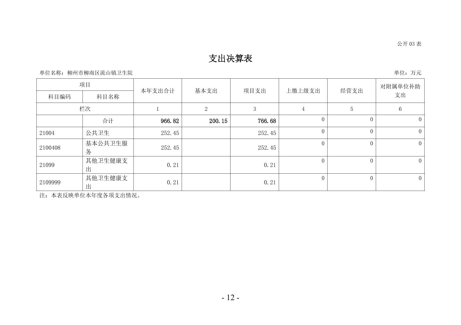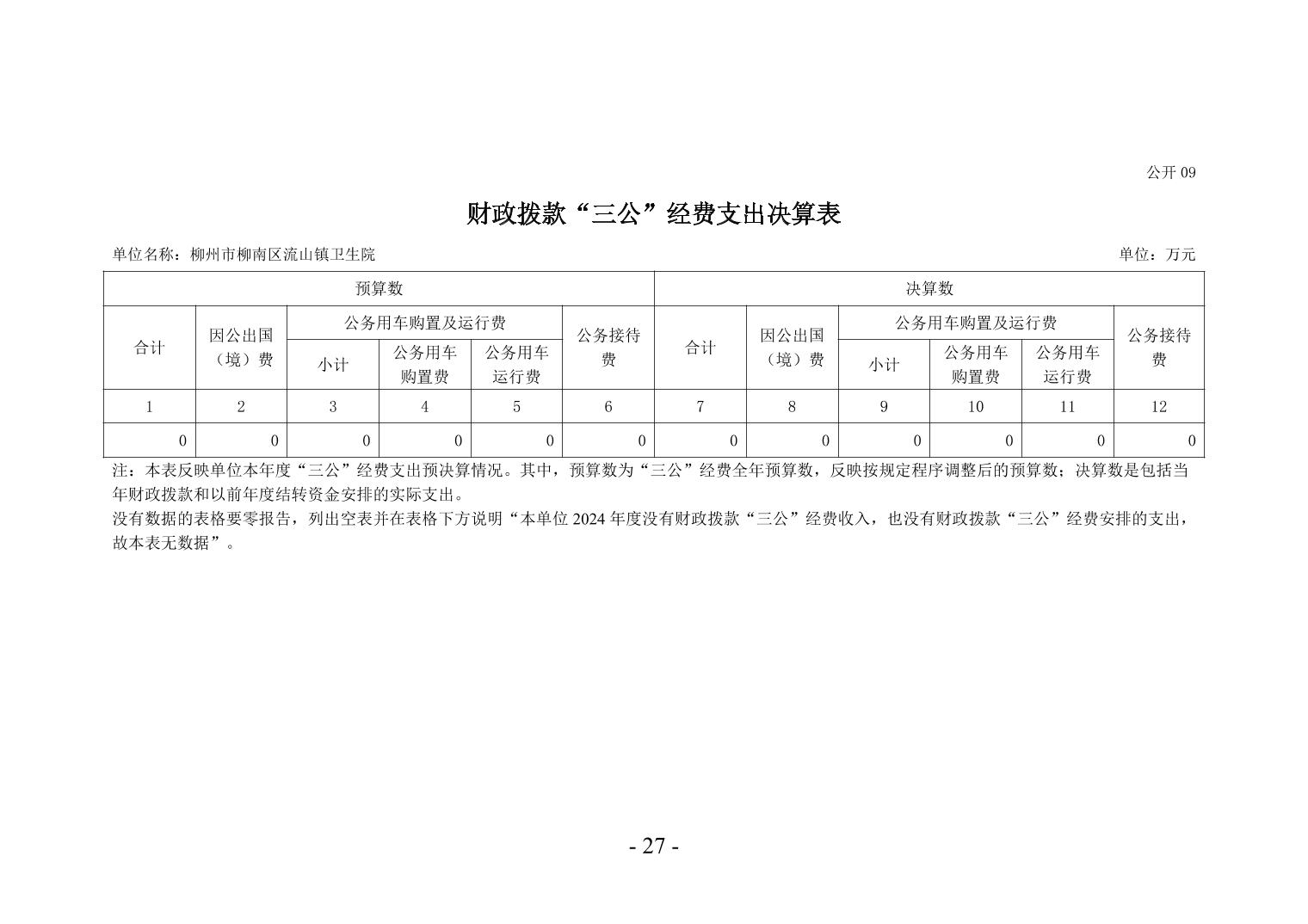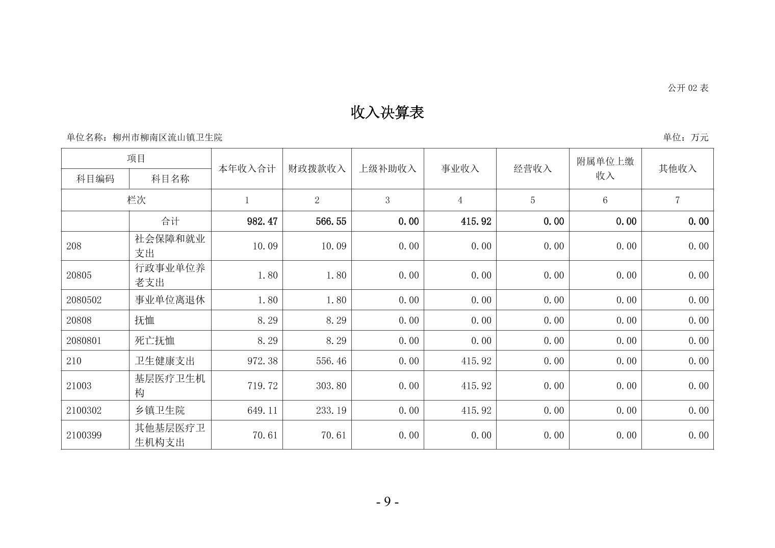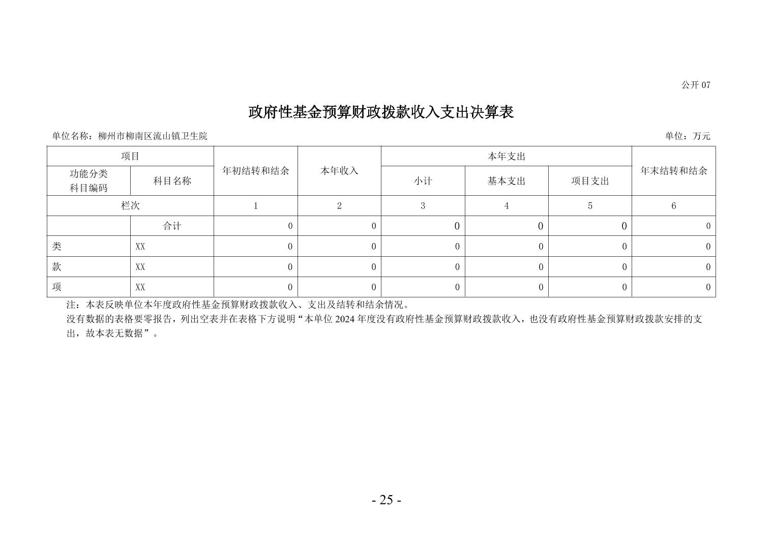 柳州市柳南区流山镇卫生院2024年年度决算公开