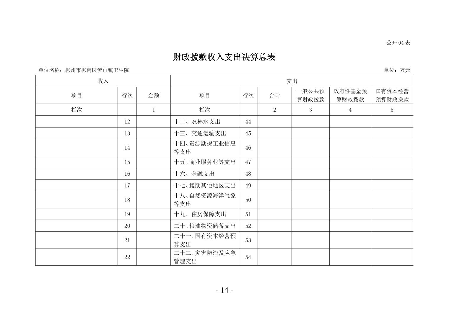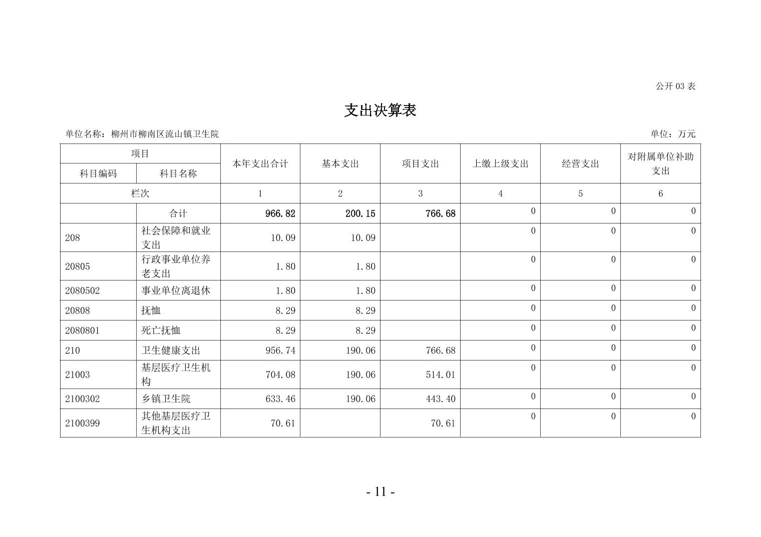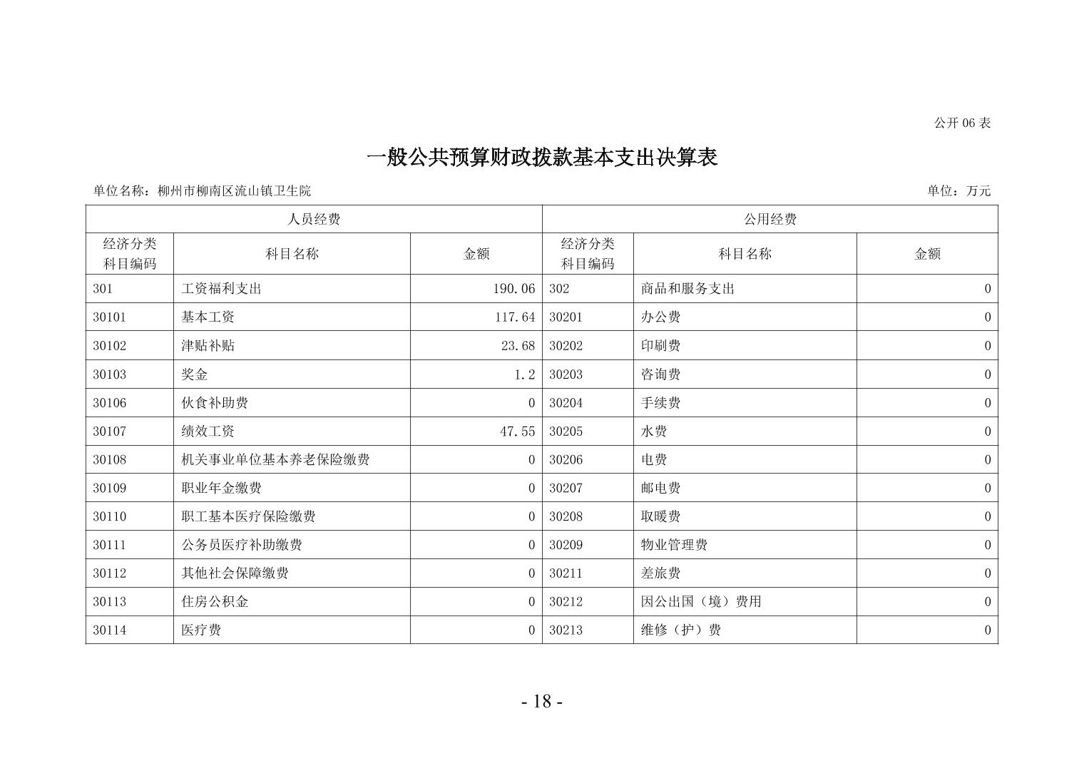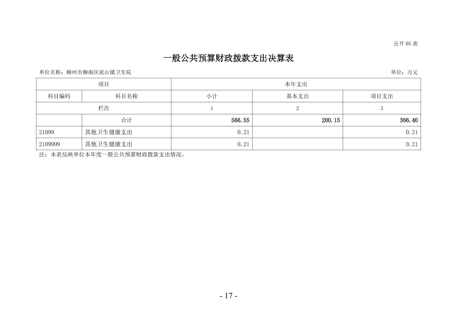 柳州市柳南区流山镇卫生院2024年年度决算公开